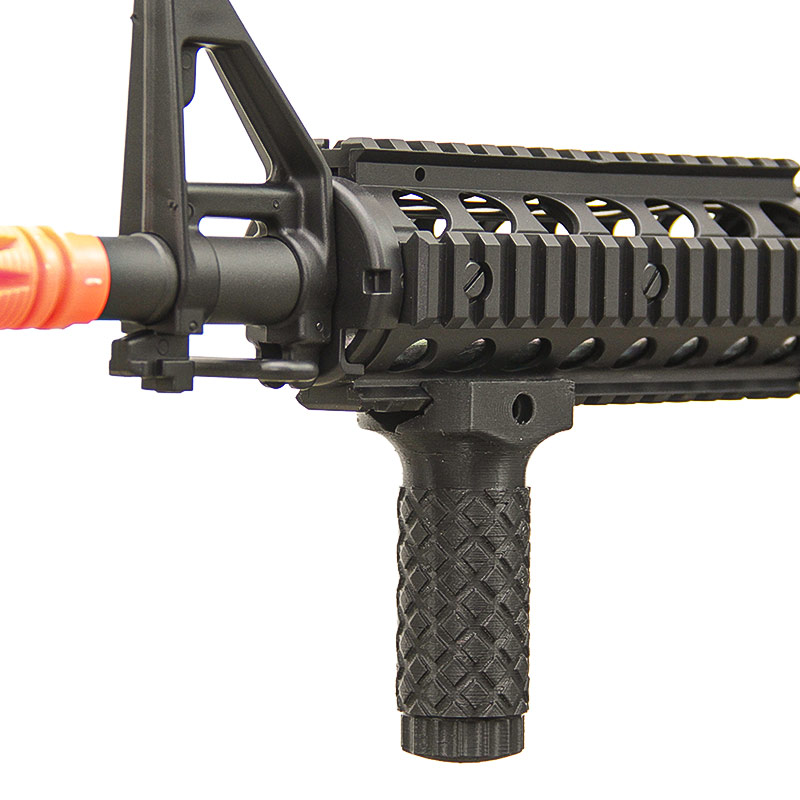 Front Grip 3D, desenvolvido pela LojaDaCarabina para oferecer uma pegada bem mais firme em seu equipamento, tornando seus disparos muito mais precisos durante os jogos ou prática de tiro.