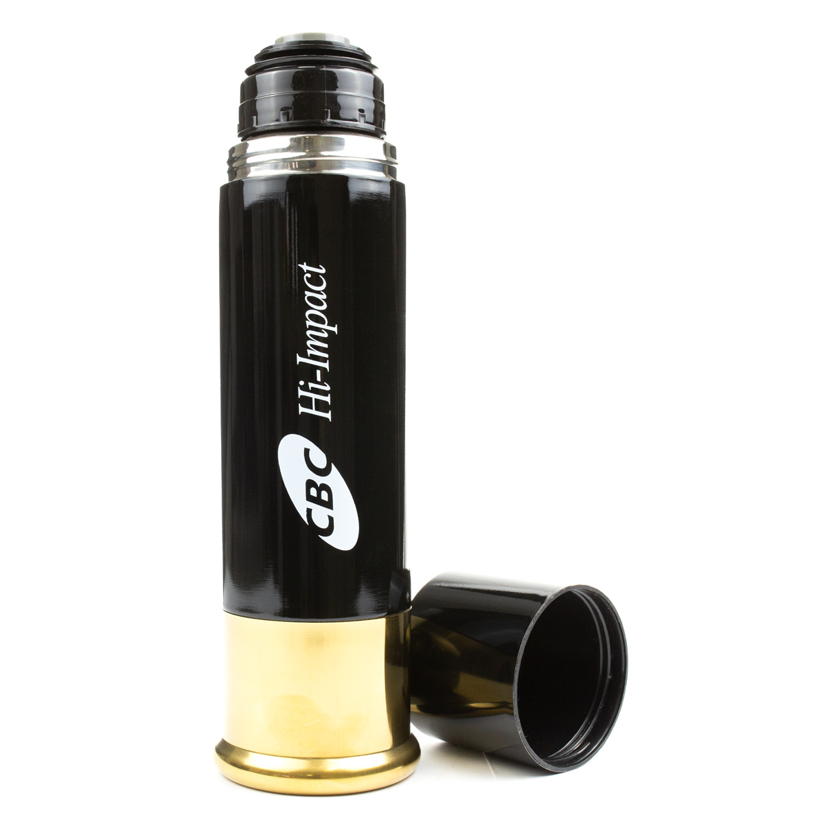 Garrafa Térmica em aço inox, formato de munição / cartuchos de caça CBC.