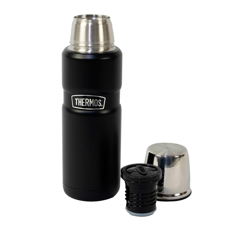 Essa Thermos permanece fria mesmo em contato com líquidos quentes e é livre de condensação devido ao isolamento à vácuo.