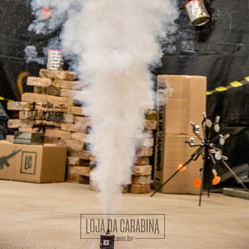 Granada de fumaça para jogos de airsoft. Produz cerca de 1:30 minutos de fumaça branca e densa, ideal para auxiliar a progressão no campo de jogo e confundir a visão do adversário