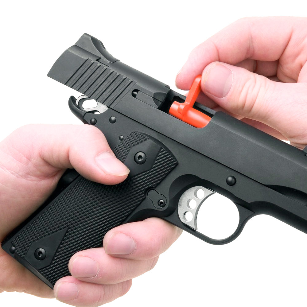 Indicador de câmara segura para pistolas 9mm. Peça de segurança que serve para informar que a arma está descarregada.