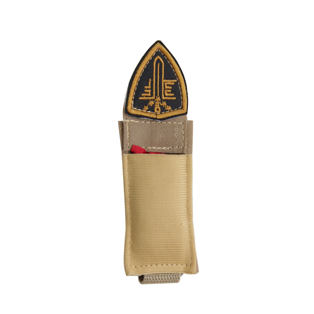 Possui uma fita, com velcro, para que possa ser posicionada em um colete, chapéu, capacete. Compatível com sistemas MOLLE.