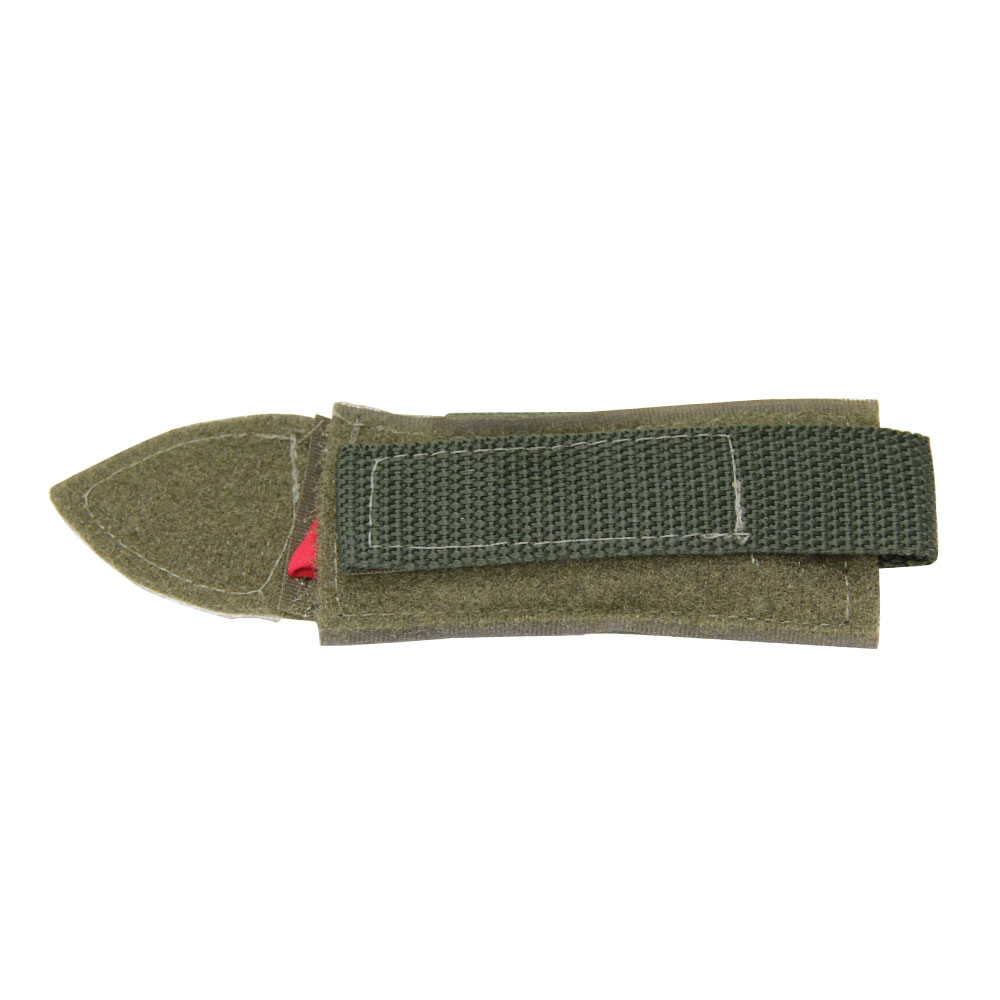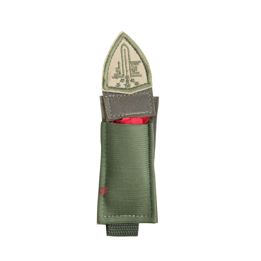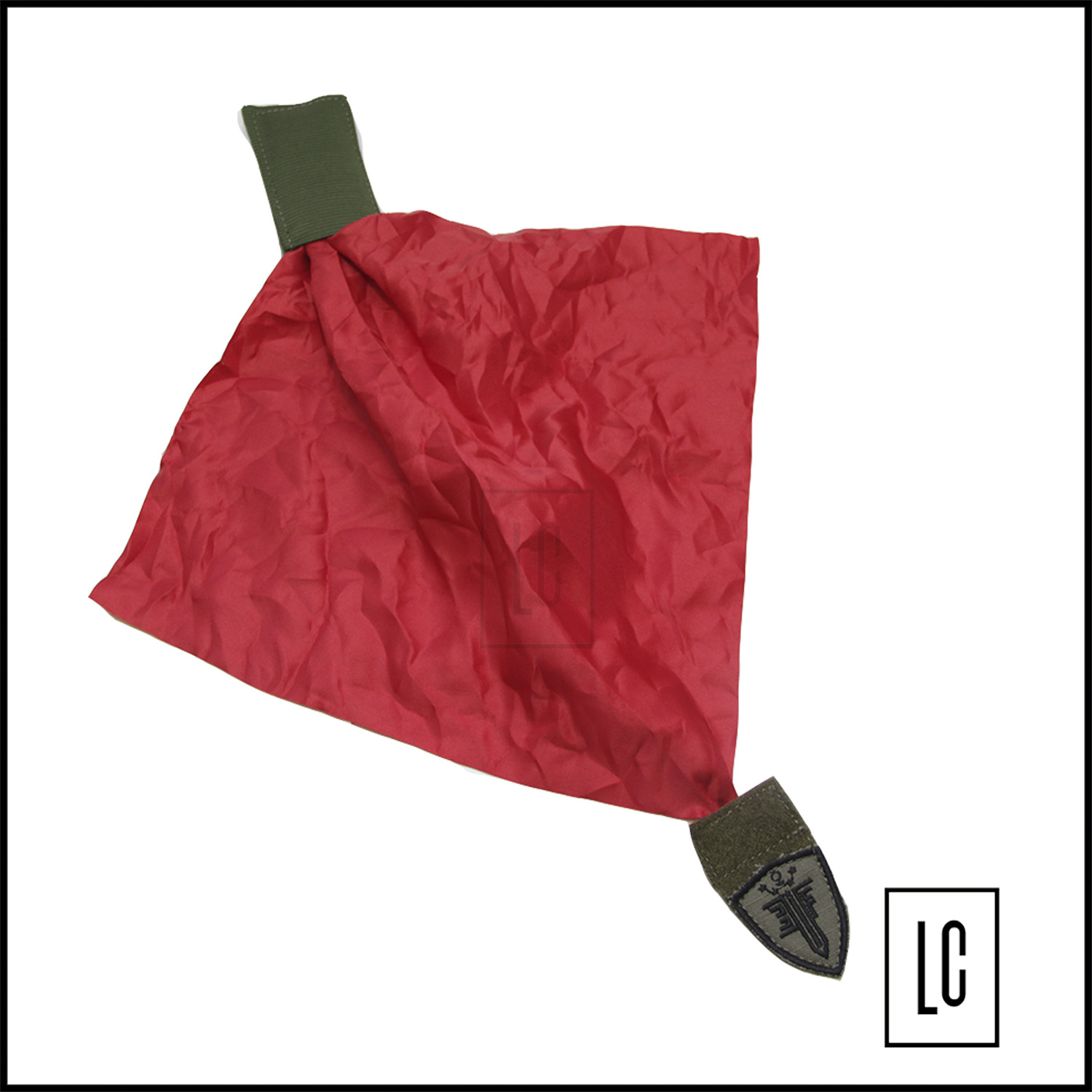 Confeccionado em Cordura, fitas de poliamida, elástico e um lenço vermelho na parte interna.