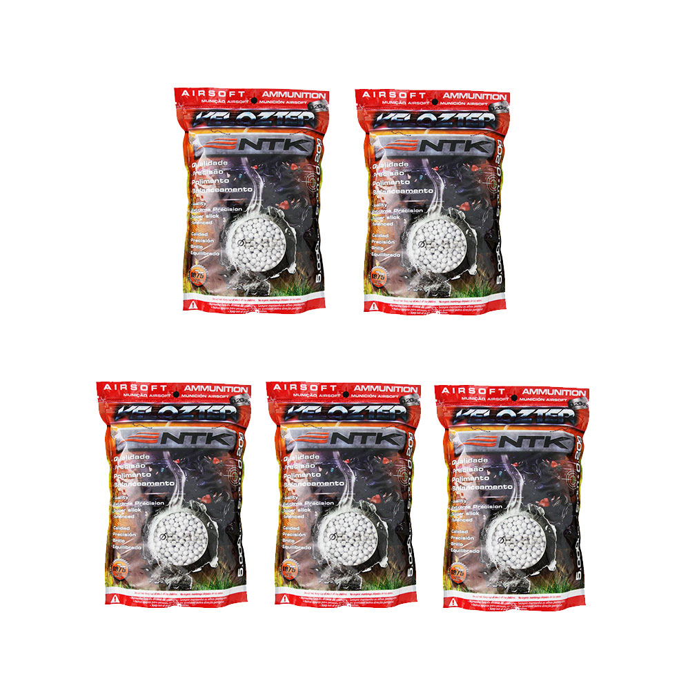 A série de munições Velozter, da NTK foi projetada para perfeição. Usando maquinário especial, passam por um processo que garante extrema precisão com tolerância mínima na faixa de +/- 0.01mm e 5.95mm de diâmetro. Velozter pode ser usada em qualquer cano entre 6.01mm e 6.05mm e inclusive em canos regulares de 6.08mm. A alta qualidade é assegurada durante todas as etapas de produção. Um sistema especial de resfriamento lento é usado quando a munição sai da injetora, eliminando a formação de bolhas no seu interior. Este processo gera um nível único de performance, qualidade e dureza a cada munição nesta embalagem.