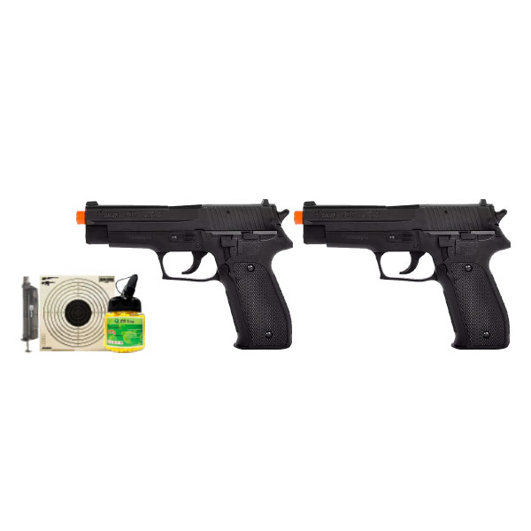 KIT DUELO AIRSOFT P226 + SPEEDLOADER + BB'S + ALVO GEL + ALVOS