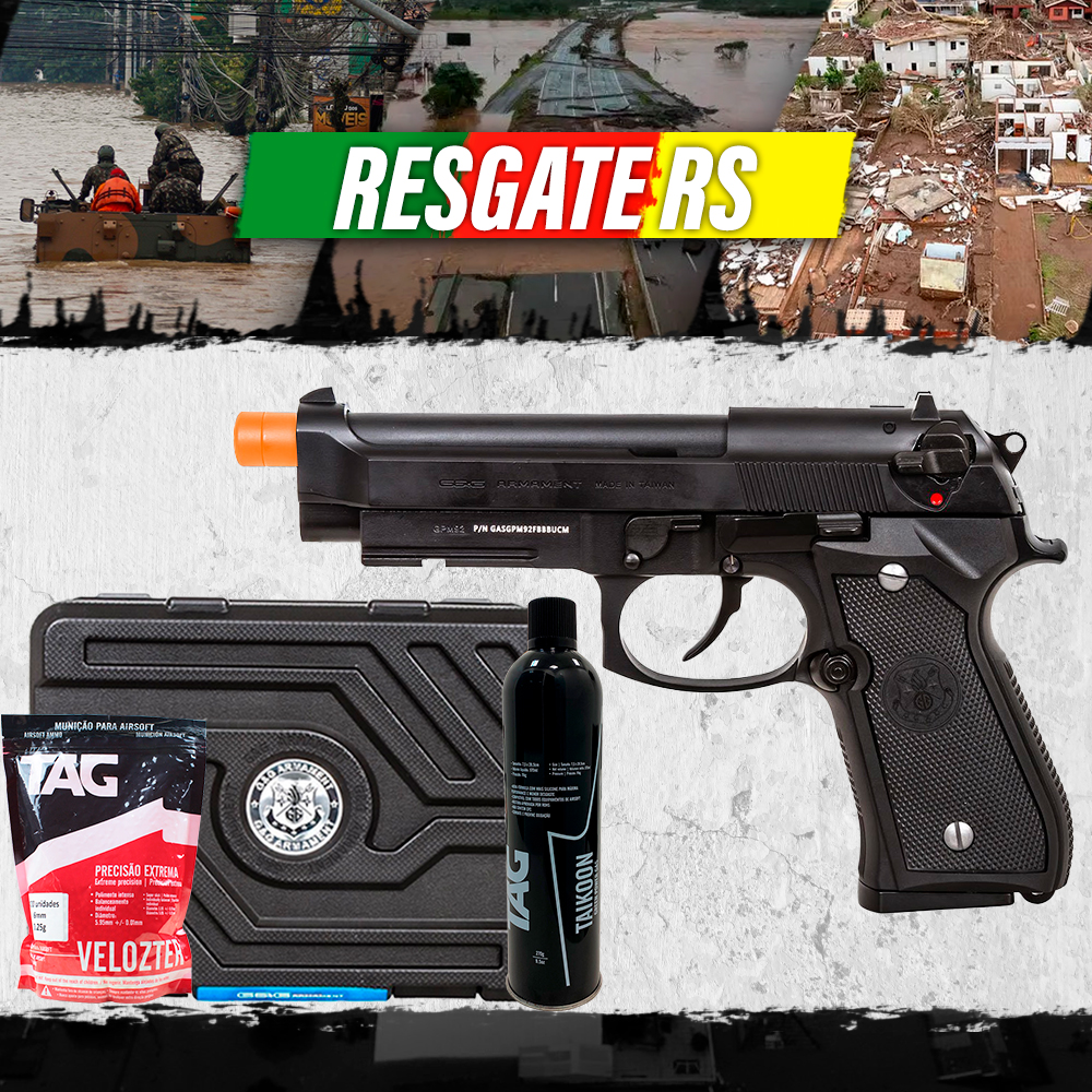 KIT RESGATE RS - Pistola GBB Airsoft Beretta M92 GPM92 G&G + Green Gas + BBs