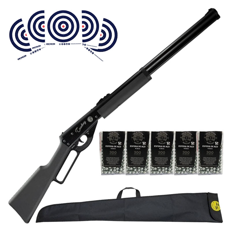 Carabina de Pressao Rossi Cowboy Lever Action 4.5mm + Esferas + Capa Rossi 45p + Alvos