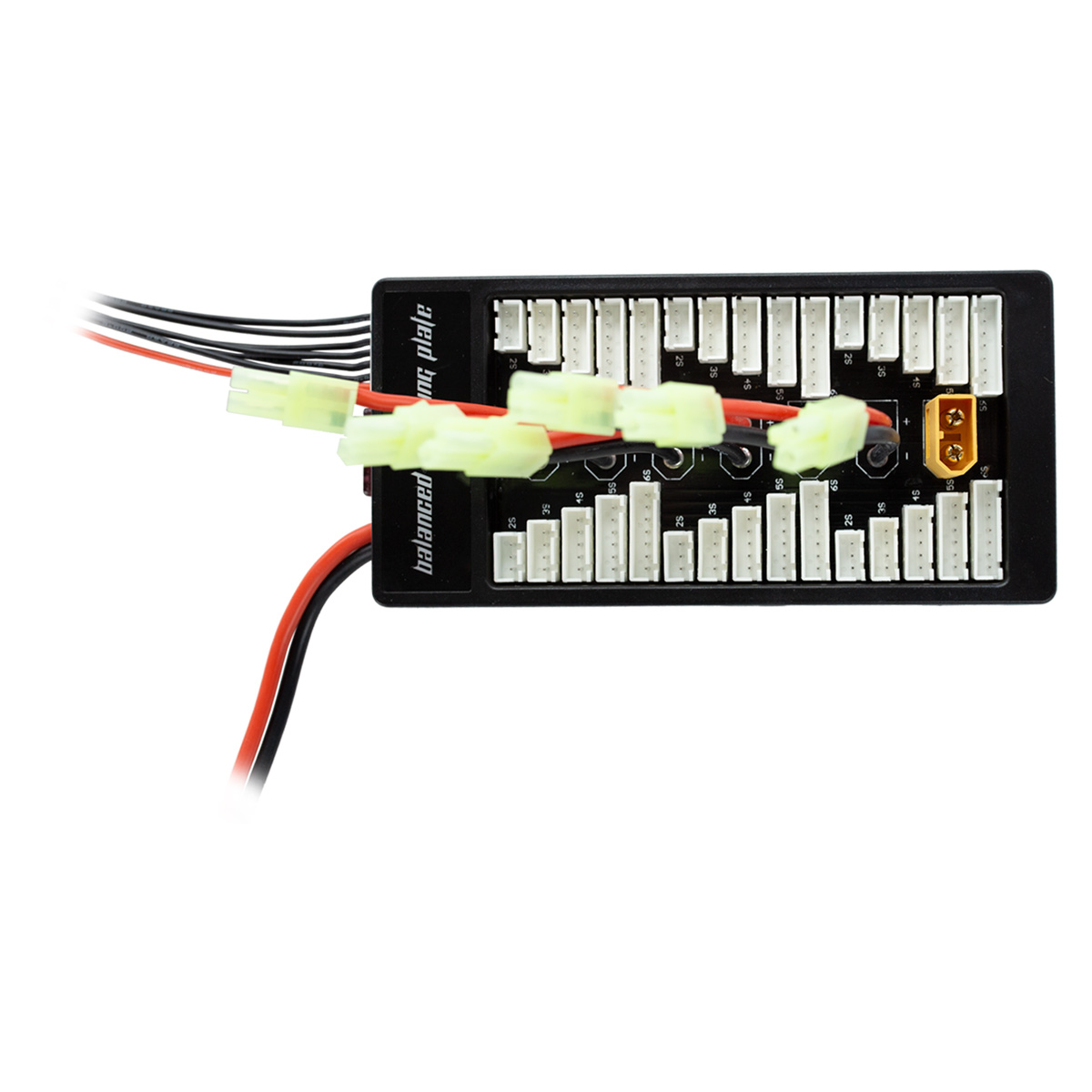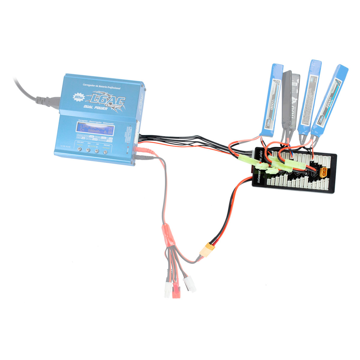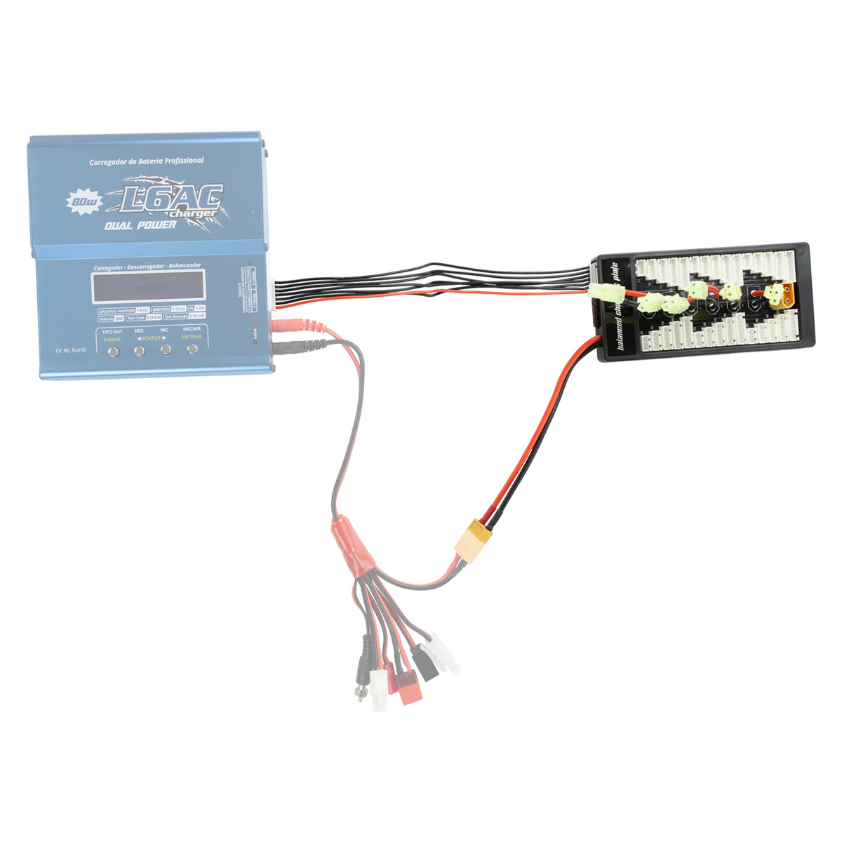 Pode suportar o uso combinado de três placas de carregamento paralelas (significa que você pode carregar até dezoito baterias com as mesmas características ao mesmo tempo).