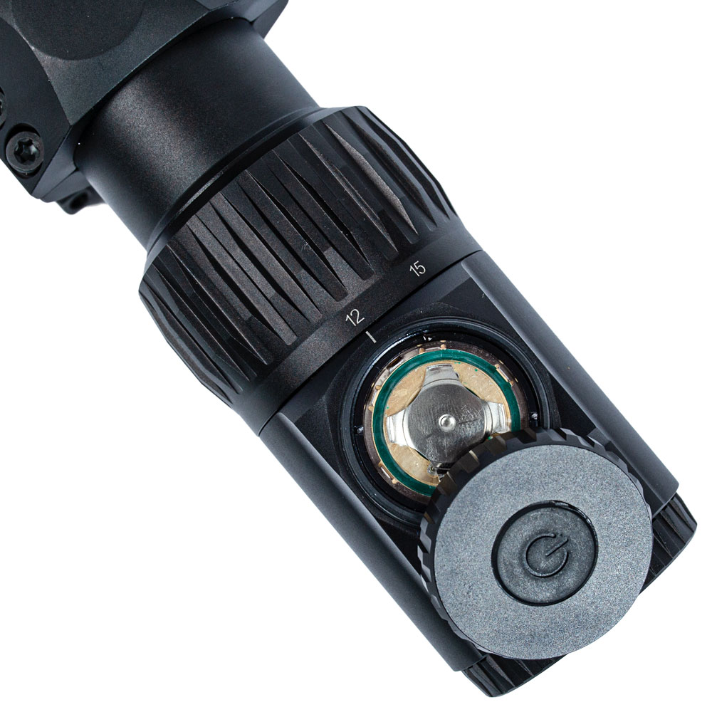 - Alimentação do retículo: Bateria CR2032