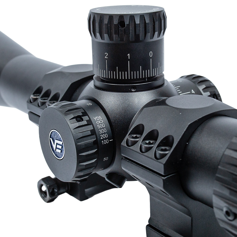 Possui torres táticas que oferecem cliques ultra finos de 1/8 MOA, onde cada clique move o ponto de impacto em apenas 0.125 polegadas a 100 jardas (aproximadamente 3.6mm a 100 metros), permitindo ao competidor fazer correções micrométricas na sua visada, buscando a perfeição no agrupamento. As torres possuem um sistema de trava (Turret Lock) robusto, que previne qualquer ajuste acidental após a zeragem, uma característica vital durante uma competição.