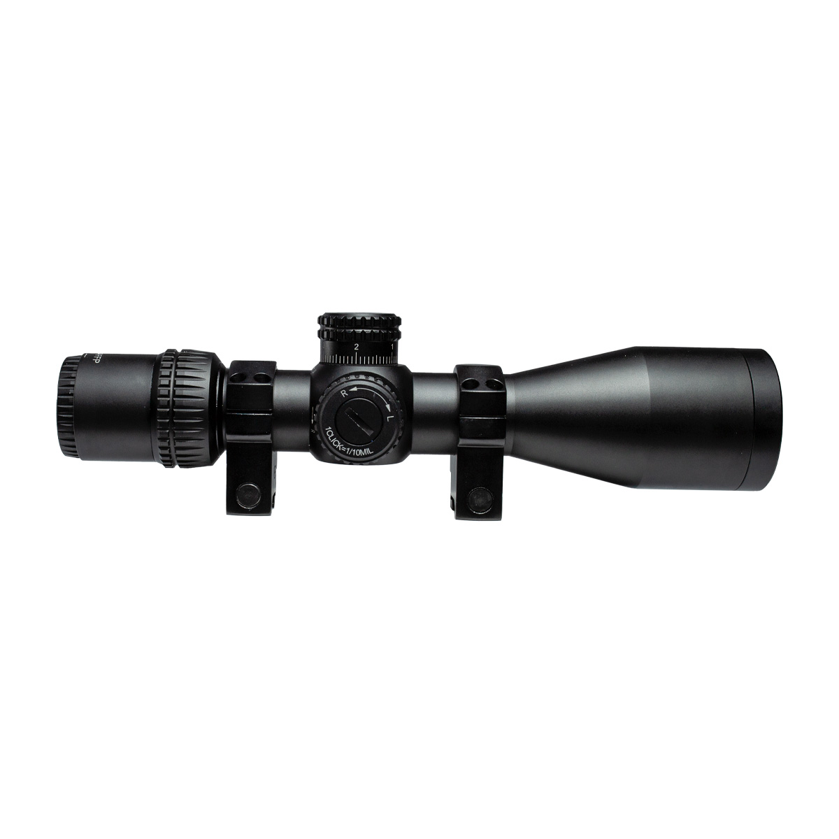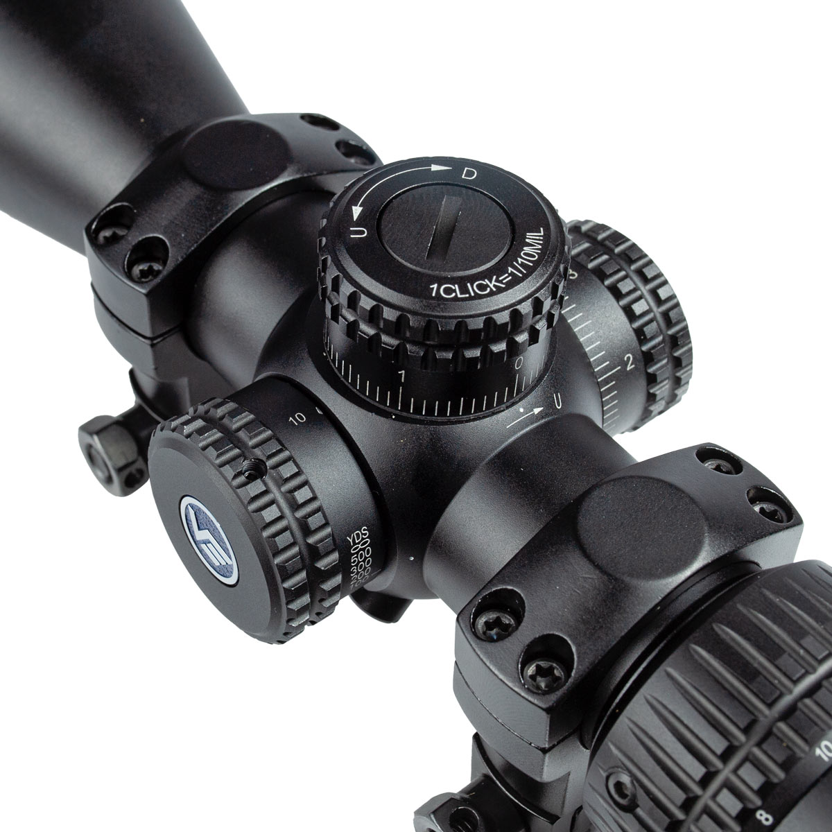 O sistema de ajuste segue o padrão miliradiano, com cliques de 0,1 MIL — o que equivale a aproximadamente 1 cm a 100 metros. Isso permite regulagens extremamente precisas, ideais para quem busca máxima performance.