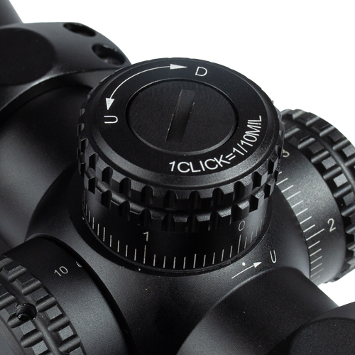 Conta com ajuste por click sendo no padrão MIL (Miliradiano). Cada click tem valor de 1/10MIL (isso equivale a 1 cm a uma distância de 100 jardas).