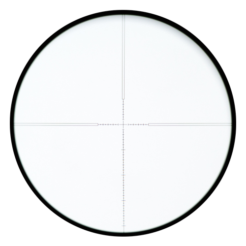 Seu retículo é muito fino, do tipo MPR-4 ideal para deixar o alvo bem à vista, sem cobri-lo. É gravado diretamente no vidro garantindo muito mais resistência. Lembrando que por se tratar de uma luneta FFP (first focal plane) o retículo vai aumentar junto quando der zoom. Essa é uma função que facilita o disparo visto que não há necessidade em fazer compensação conforme o zoom.