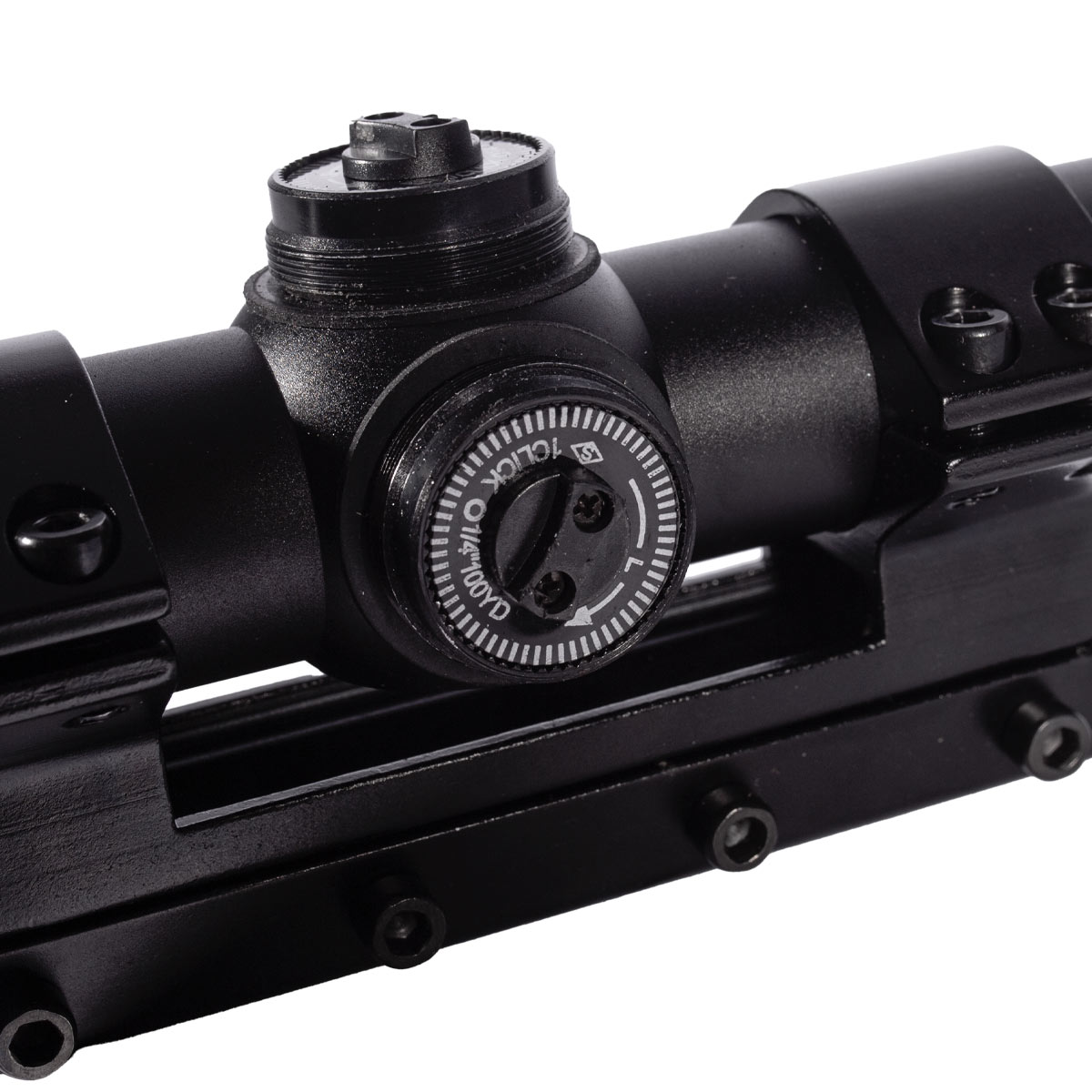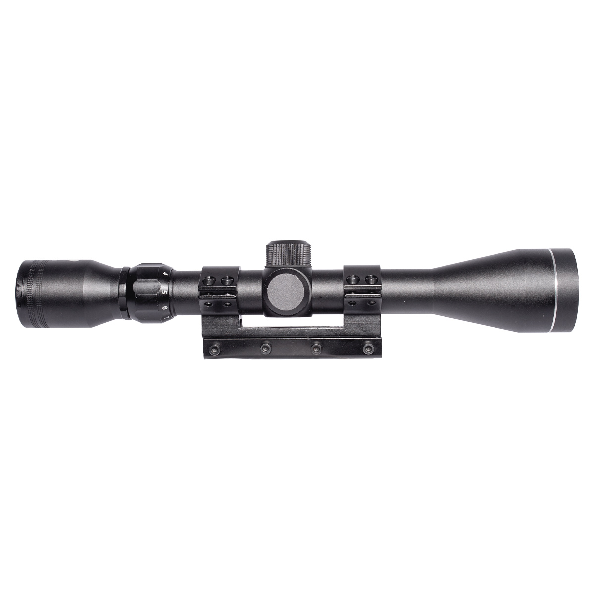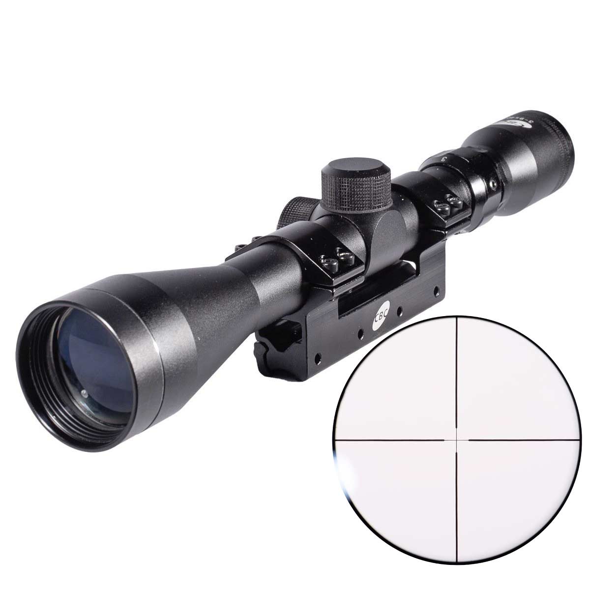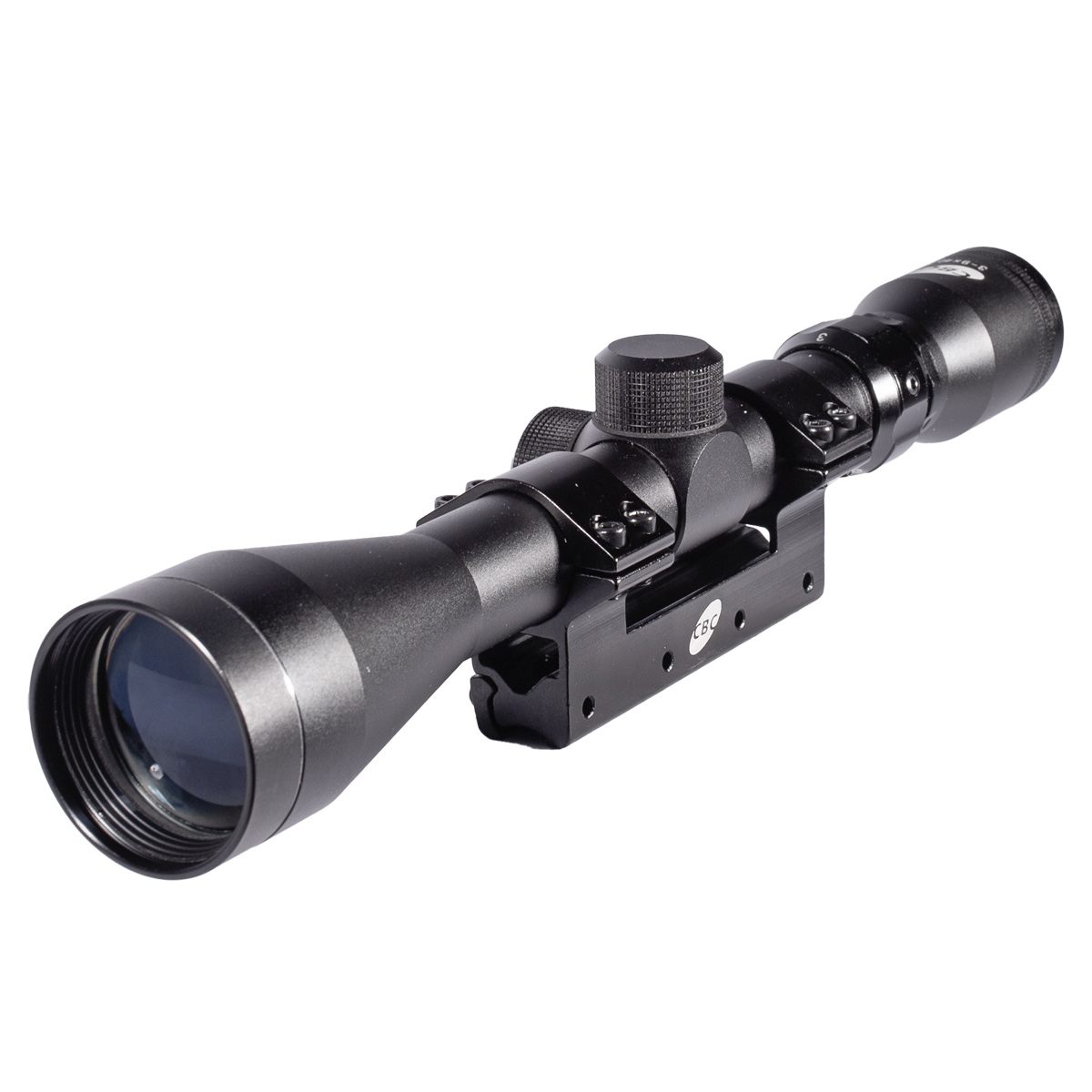 Luneta CBC com zoom ajustável de 3 a 9x e com objetiva de 40 mm. Uma excelente mira óptica que proporciona rápida aquisição do alvo e de forma precisa.