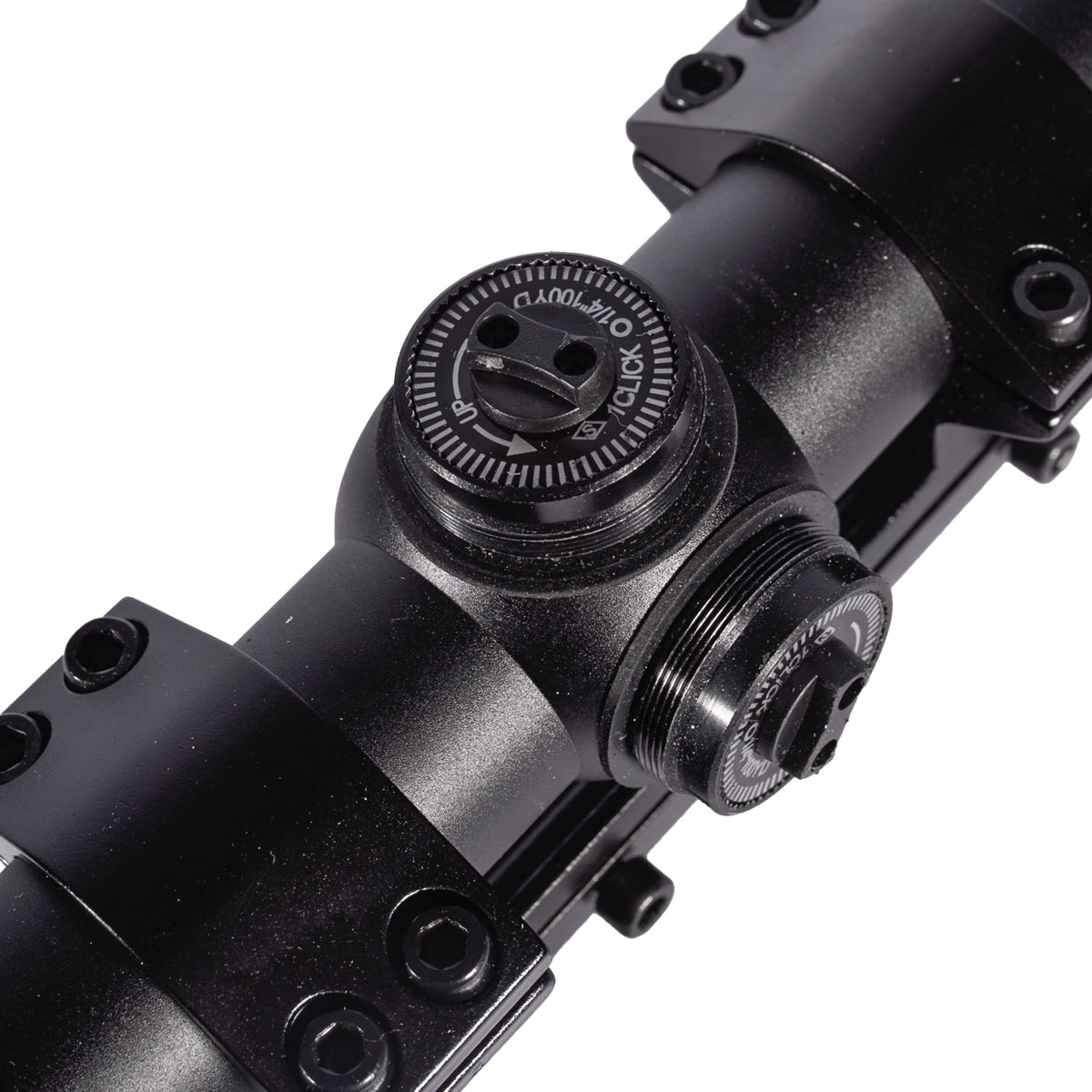 Conta com retículo 30/30 e ajuste vertical e horizontal por click.