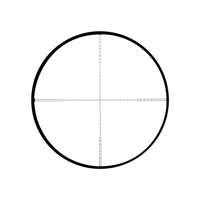 O Retículo é o Modelo VMD-2. É o retículo ideal pra quem gosta de visão limpa, pois ele é bastante fino, e conta com 10 Dots antes de cada poste.