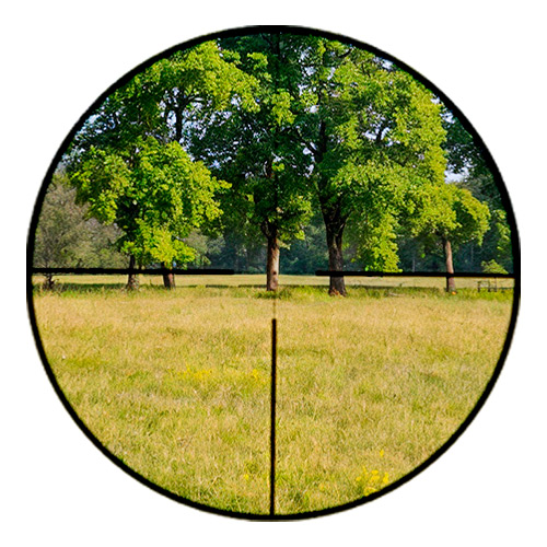 Ajuste de foco/paralaxe pela lateral da luneta (de 10 jardas ao infinito) garante alinhamento exato entre retículo e alvo em qualquer distância.