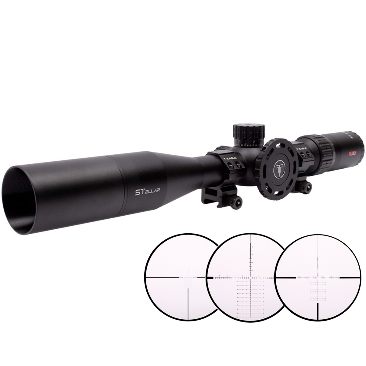 Luneta T-Eagle com primeiro plano focal (FFP) da linha Stellar de 4-16x44. Conheça essa luneta incrível de alta potência.