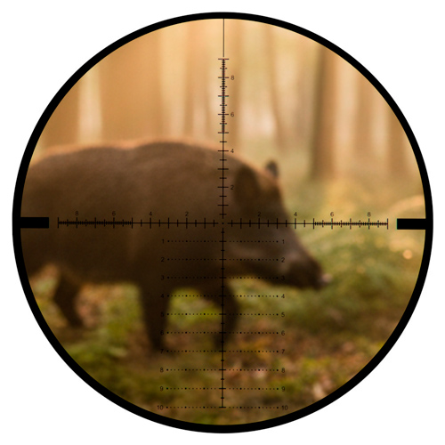 É uma luneta de primeiro plano focal, ou seja, a medida que a ampliação muda o tamanho do retículo também muda, tornando a estimativa de distância muito mais precisa.
