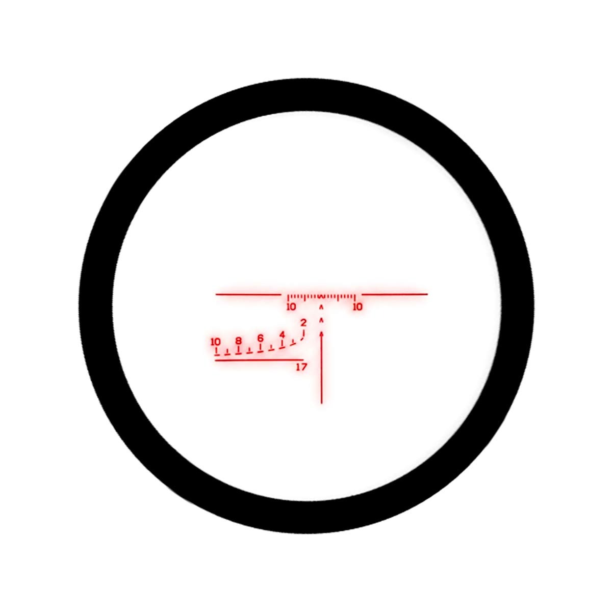O retículo iluminado na cor vermelha, alimentado por bateria CR2032, facilita a visada em ambientes com baixa luminosidade. Além disso, apresenta marcações de compensação balística no estilo tradicional Kalashnikov, auxiliando em disparos com diferentes distâncias e ângulos.