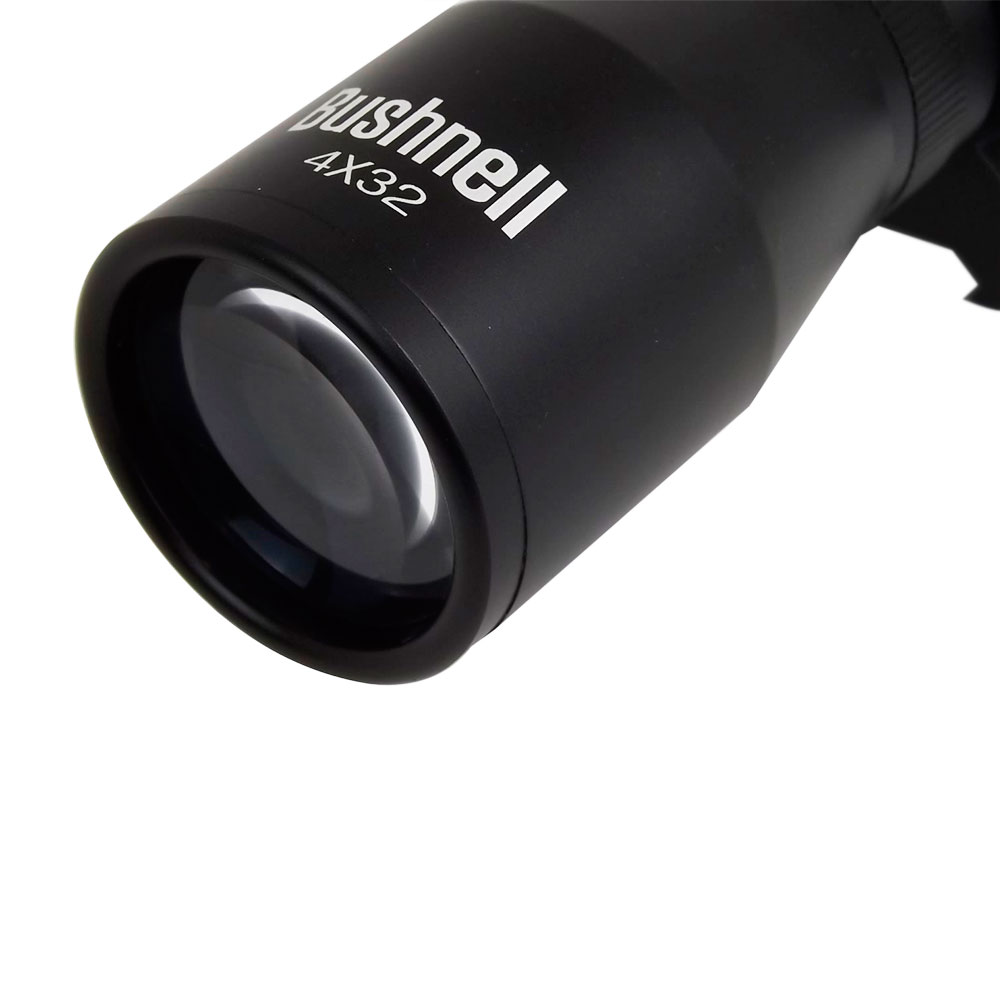 Possui zoom fixo de 4x e objetiva de 32mm.
