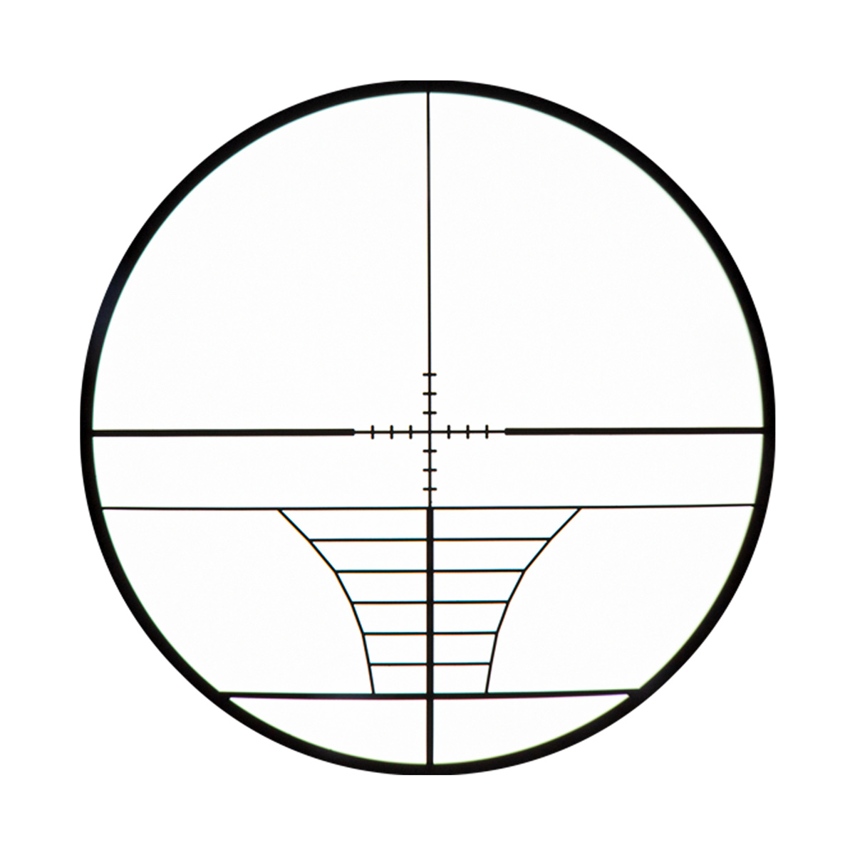 A luneta conta com ajuste vertical e lateral por torres e também possui ajuste de dioptria na ocular.