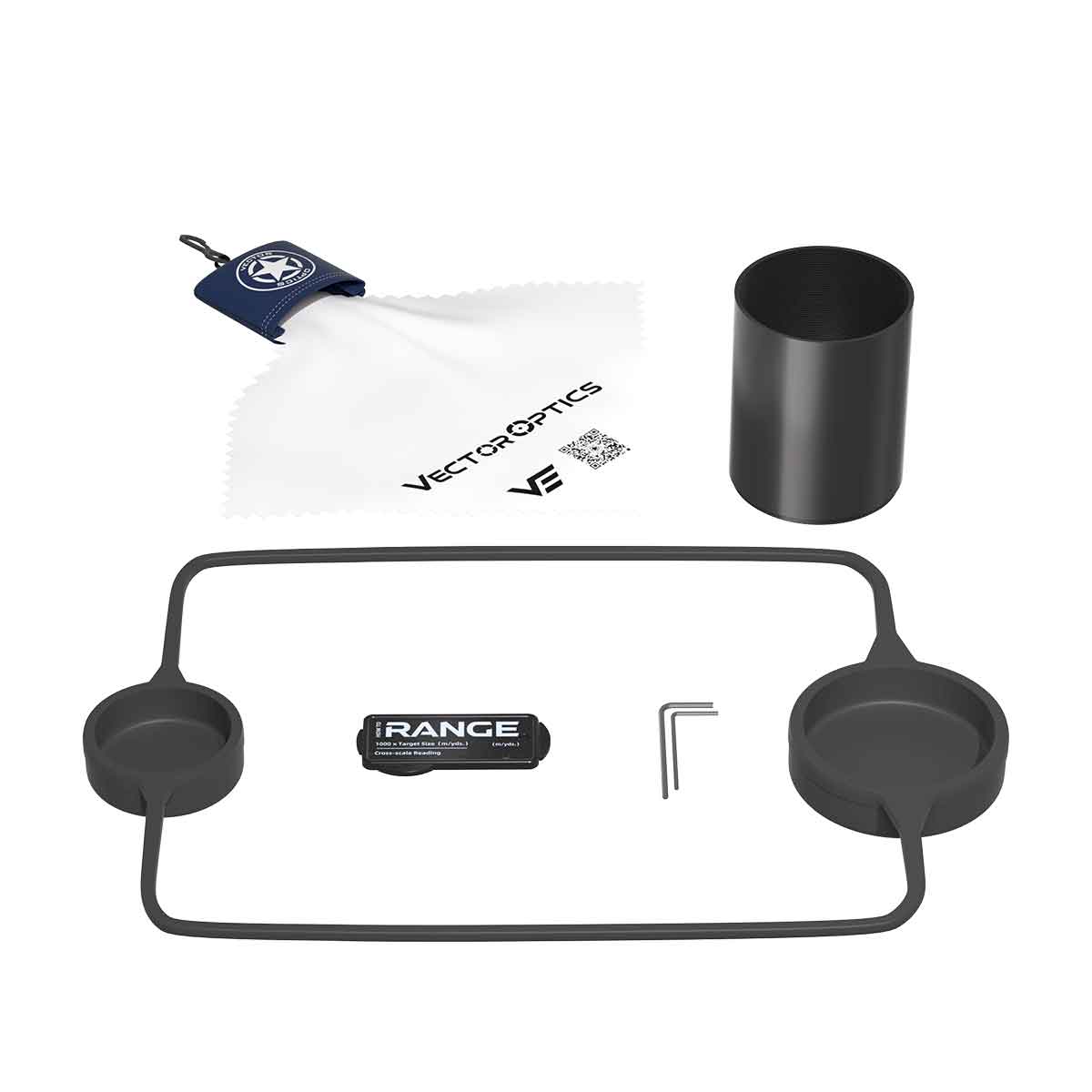 A Luneta Vector Optics SCFF-66 acompanha alavanca de zoom (throw lever) para ajustes rápidos de magnificação e um parasol para reduzir o brilho em dias de sol forte.