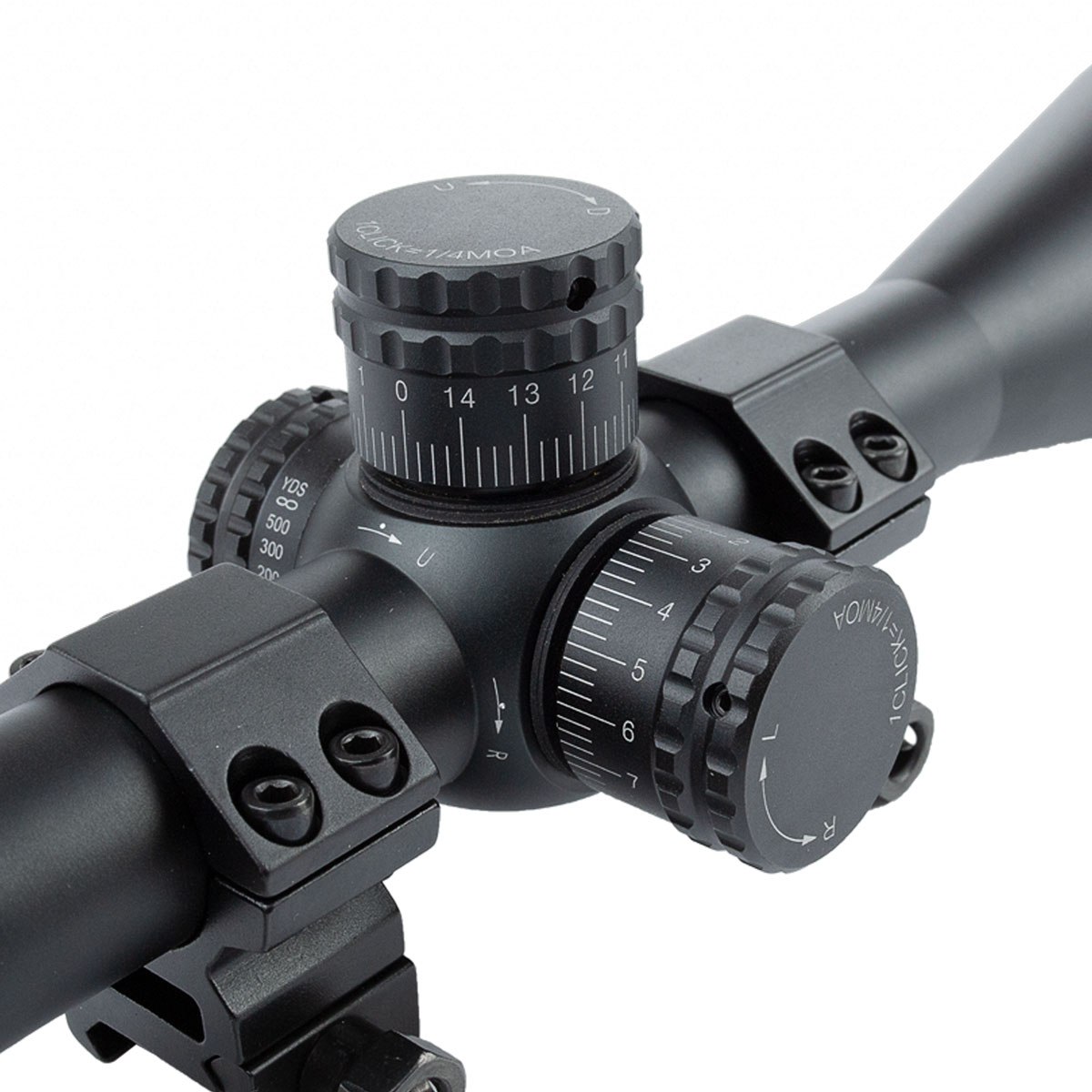 A nomenclatura da Luneta 6-24x50 Hugo Vector SFP se dá porque 6-24x é o fator de zoom que ela possui, que começa em 6x e sua aproximação máxima é de 24x. Pode ser ajustado pelo seu anel no lado da ocular com precisão, pois possui um recartilhado que deixa a pegada firme e precisa.