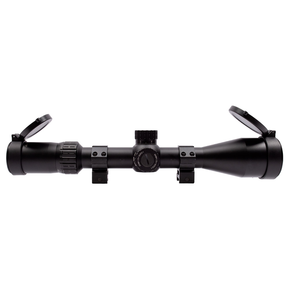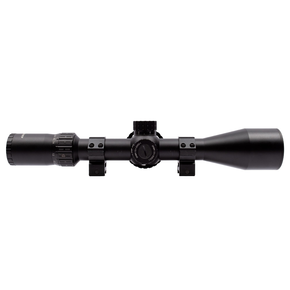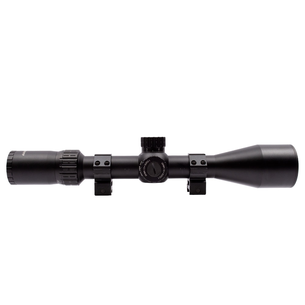 Amplo campo de visão (FOV) e possui ajuste de dioptria que permite ao atirador realizar o ajuste para que a luneta se adapte às suas necessidades.