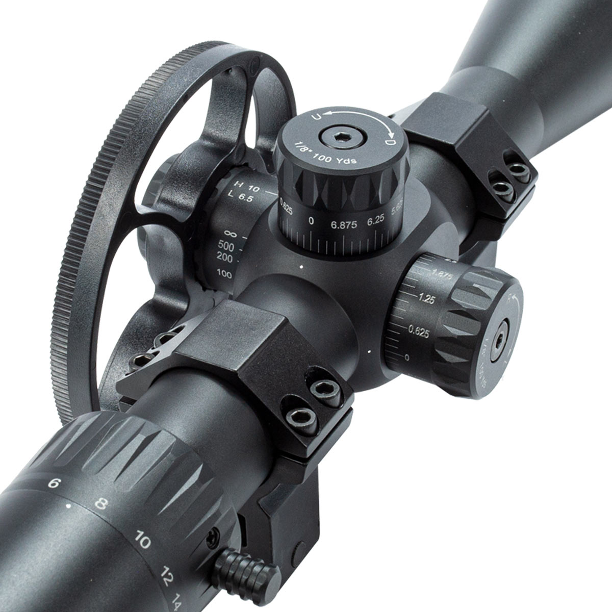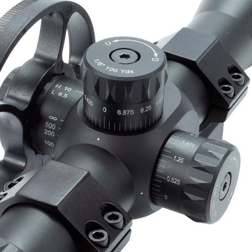 Possui torres de ajuste vertical e horizontal com cliques de 1/8 MOA. Sendo o mais sofisticado e preciso em questão de ajuste.