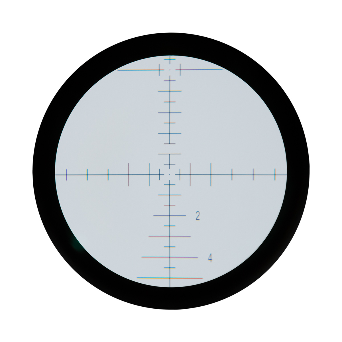 Essa luneta possui Primeiro Plano Focal (FFP), ou seja, o retículo aumenta ou diminui junto com o zoom. Muito usado em tiros de longa distância, porque facilita a correção de disparo sem precisar calcular cada aumento de zoom.