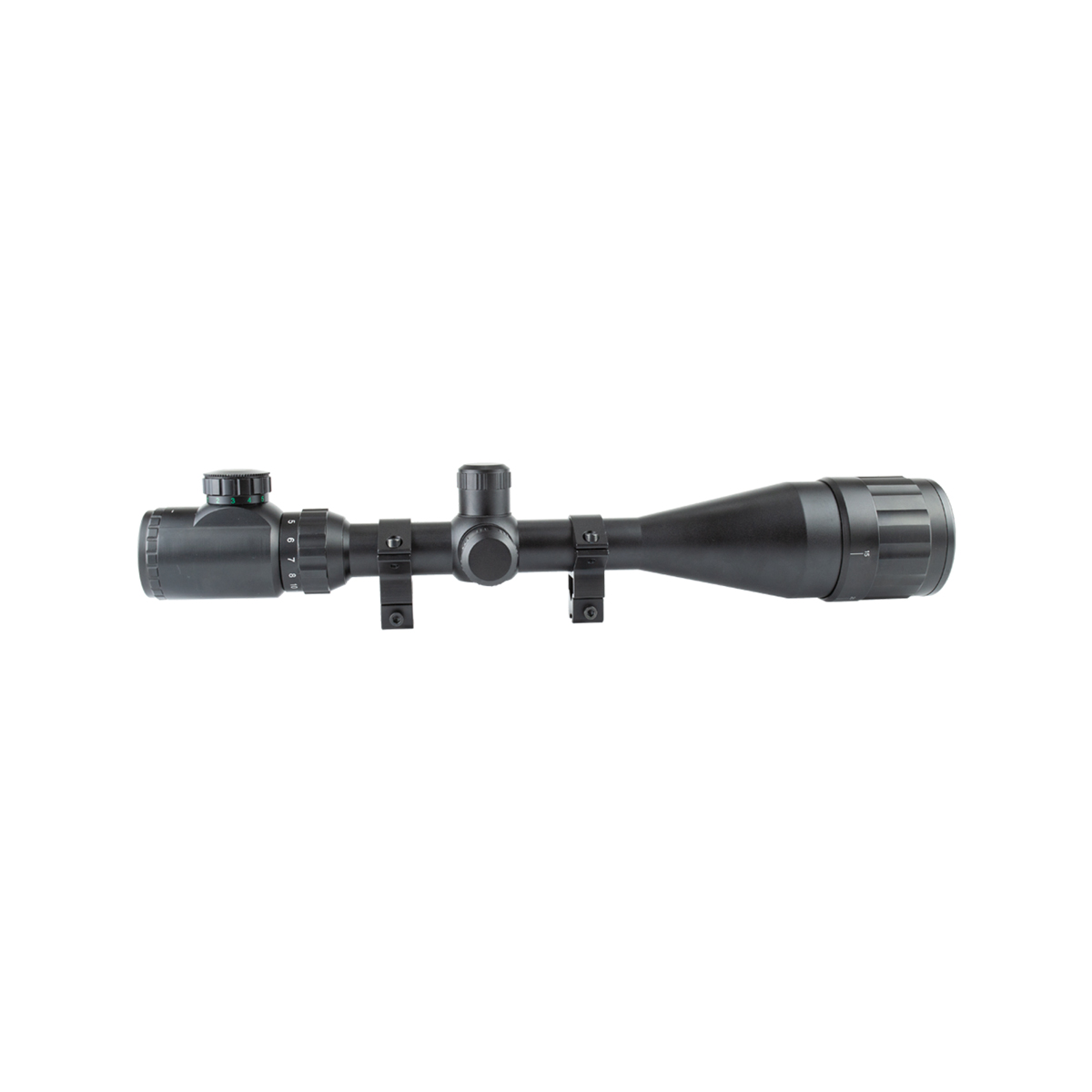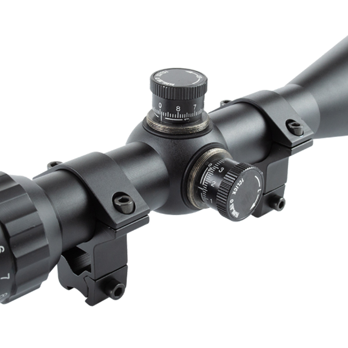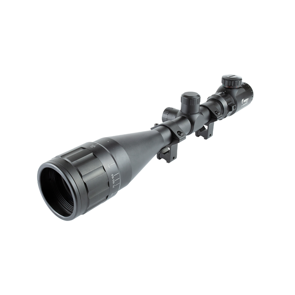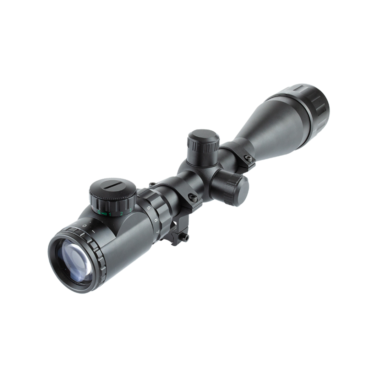 Luneta com ajuste de paralaxe e retículo Mil-Dot iluminado, fabricada em metal pela QuickShot.