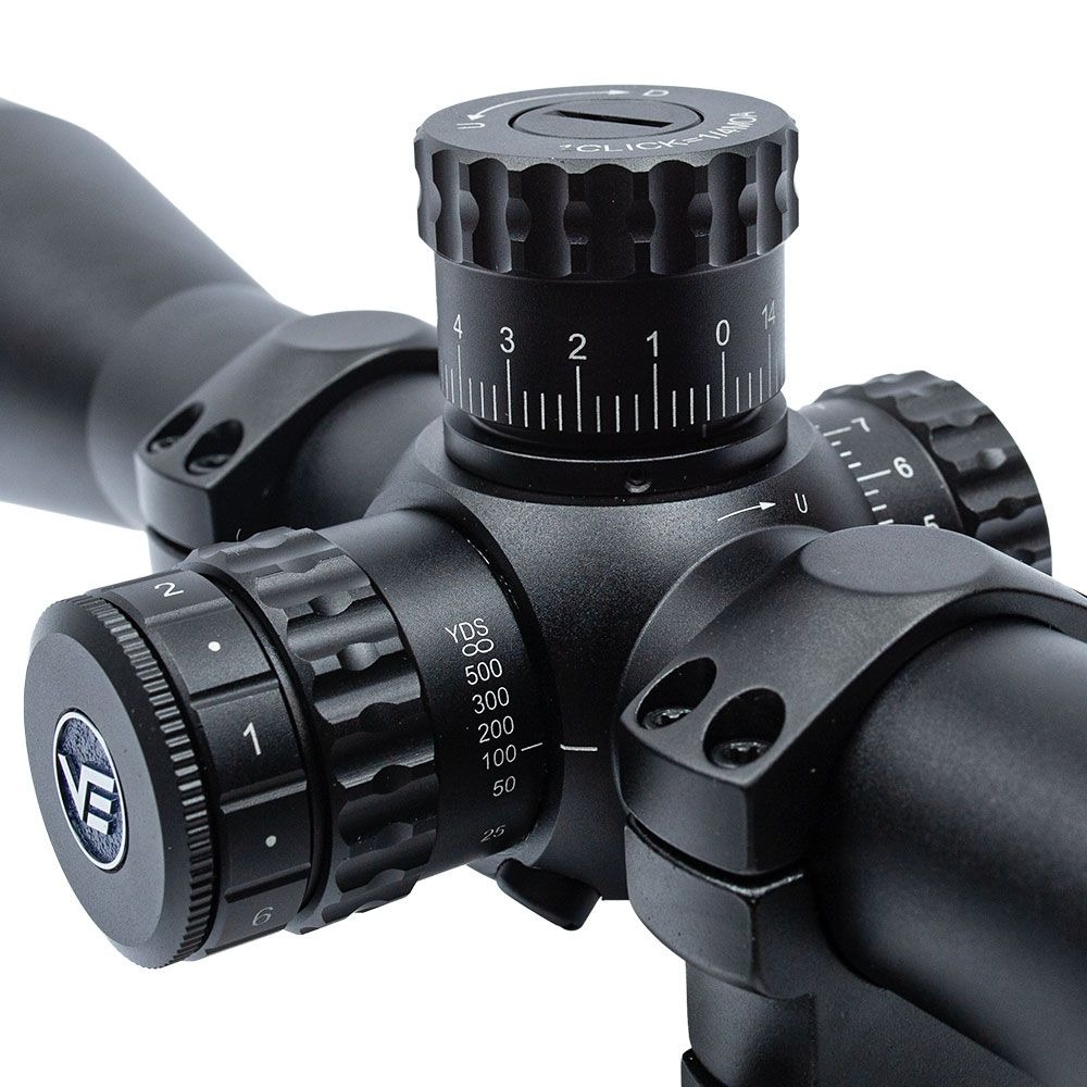 O grande diferencial deste modelo é o retículo VSE-3 MOA posicionado no primeiro plano focal (FFP), característica essencial para atiradores que precisam de cálculos rápidos e precisos de compensação de queda e vento em qualquer nível de zoom. Esse recurso é indispensável para modalidades dinâmicas como caça de precisão ou situações táticas em que a velocidade e a precisão dos ajustes fazem toda a diferença, pois o atirador não precisa se preocupar em recalcular os valores do retículo a cada mudança de zoom.