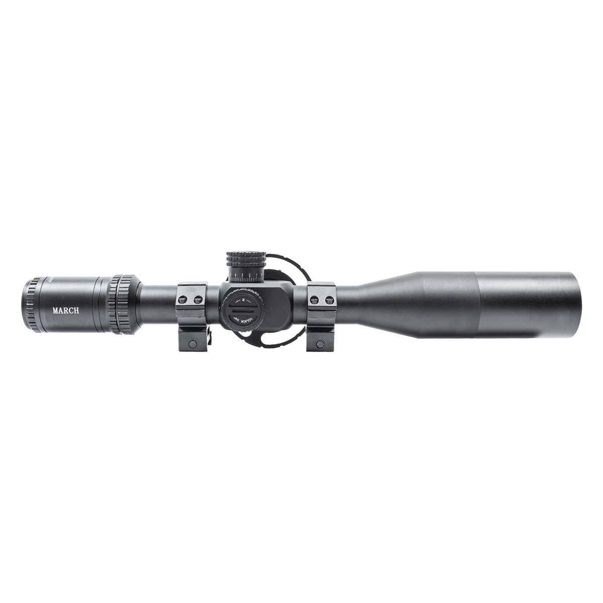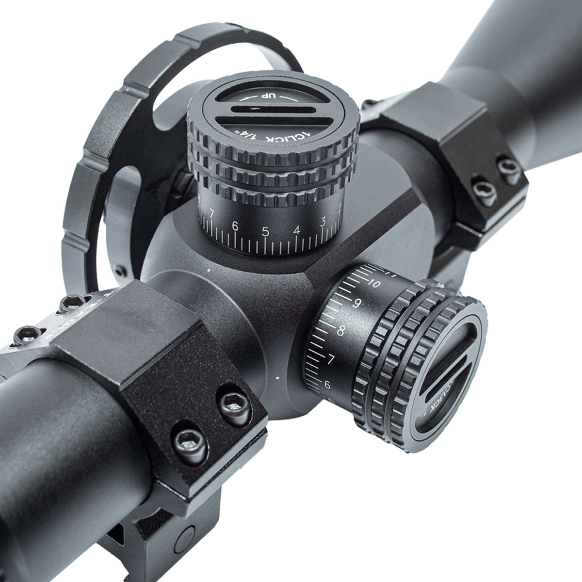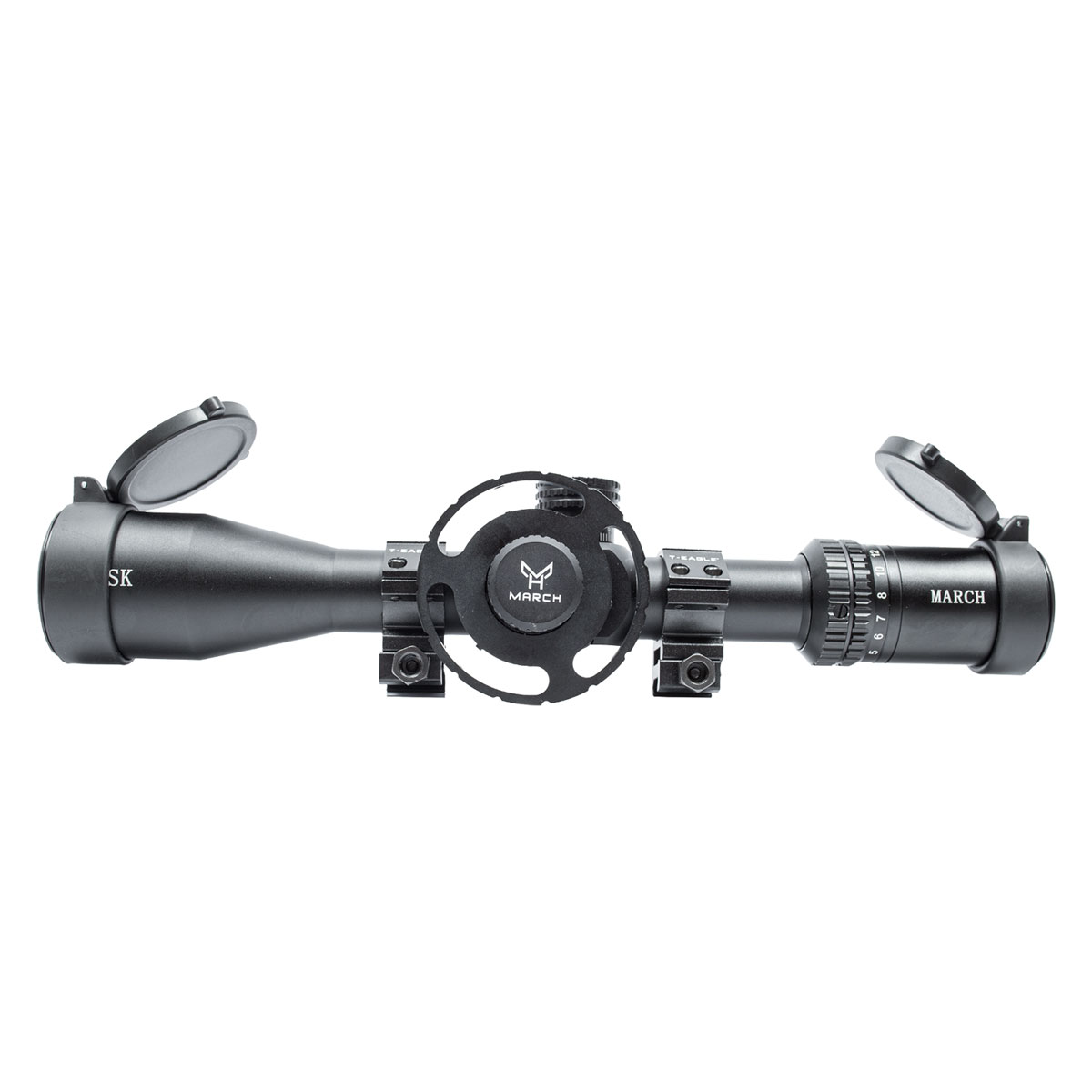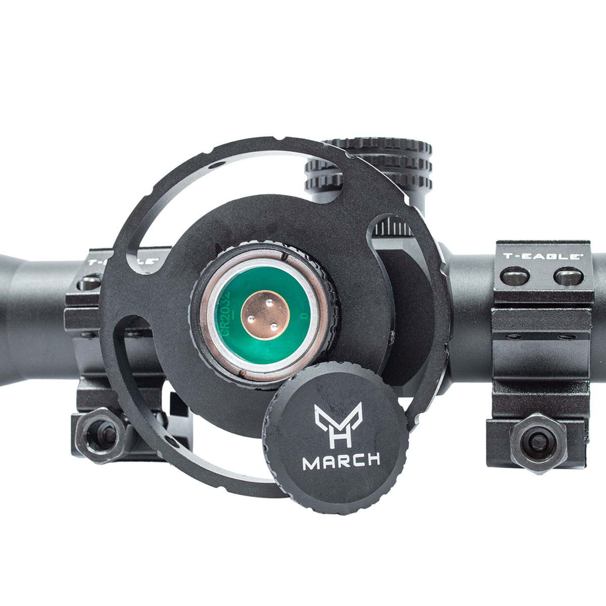 Inclui ajuste de paralaxe, essencial para eliminar erros de paralaxe e garantir maior precisão, além de ajuste de dioptria e alívio ocular confortável para uma visada mais estável. Acompanha roda lateral (side wheel) para ajustes finos de paralaxe, tampas flip top para proteção das lentes, parasol em alumínio e mount duplo para trilho 20 mm.