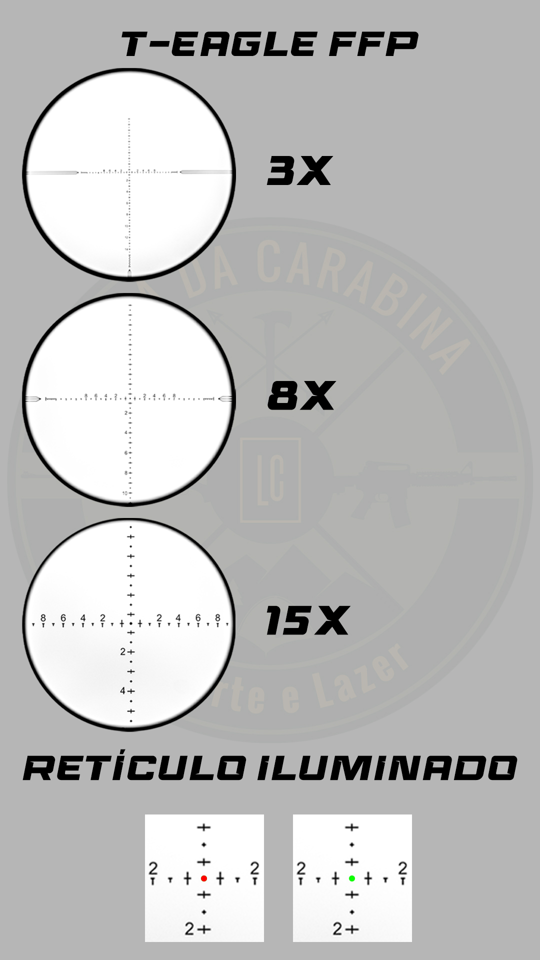 LUNETA PRIMEIRO PLANO FOCAL T-EAGLE 3-15X44 RETÍCULO ILUMINADO