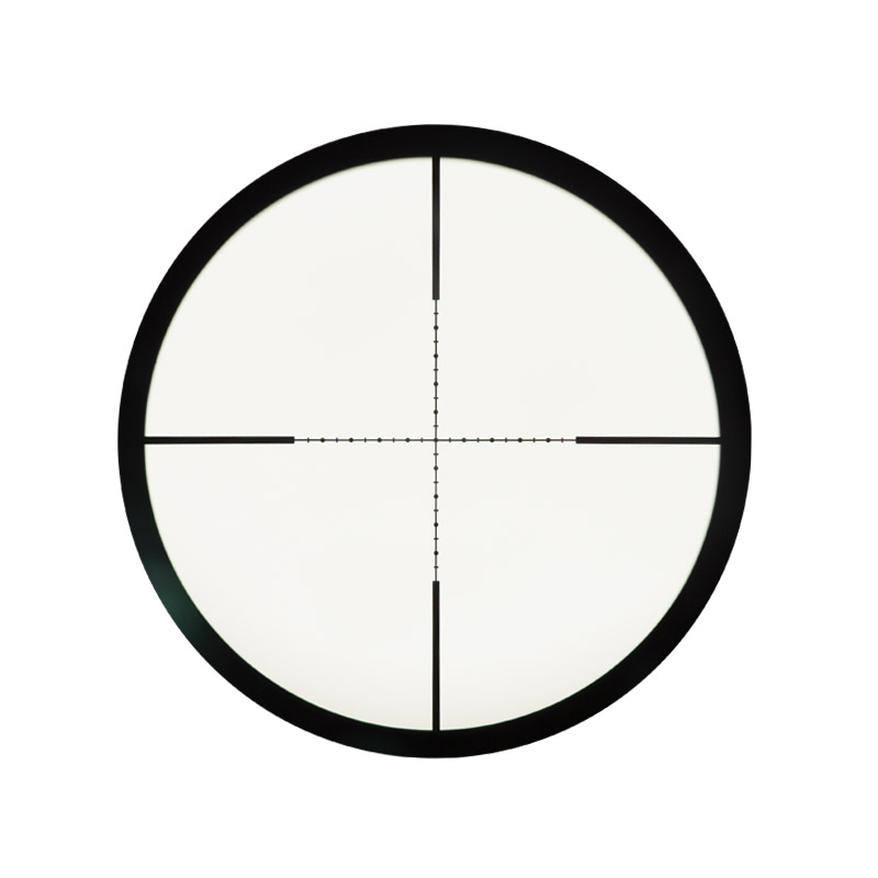 Seu retículo é do tipo Mil Dot, sem iluminação.
