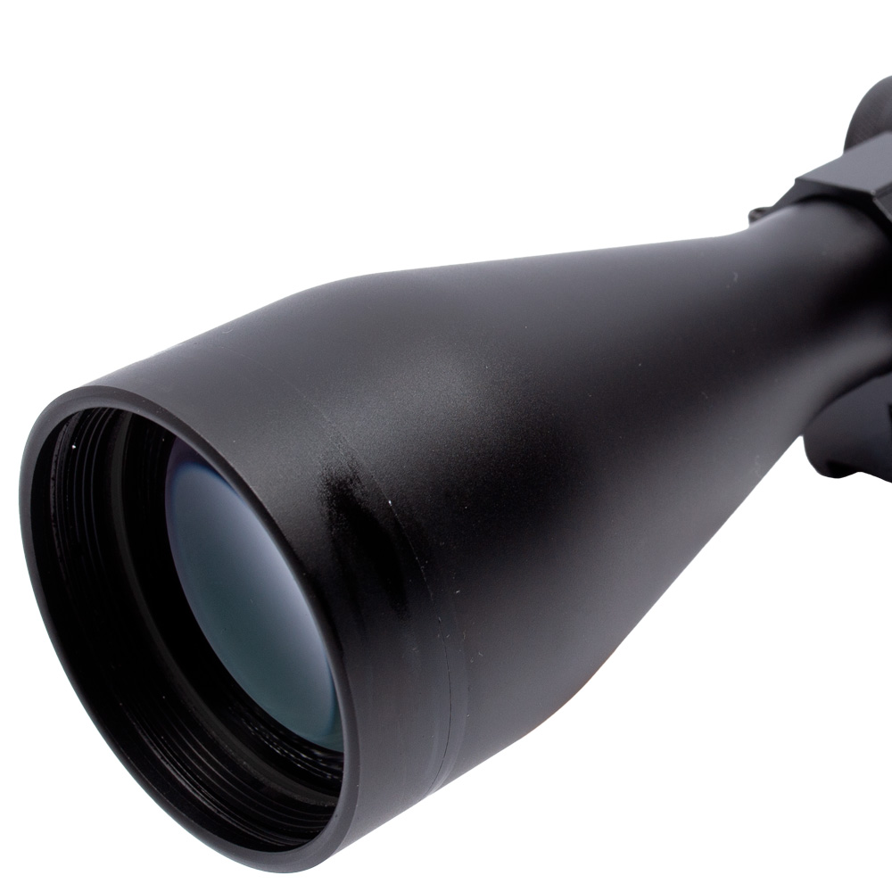 Essa luneta possui ampliação ajustável de 3x a 9x e uma objetiva de 50 mm.