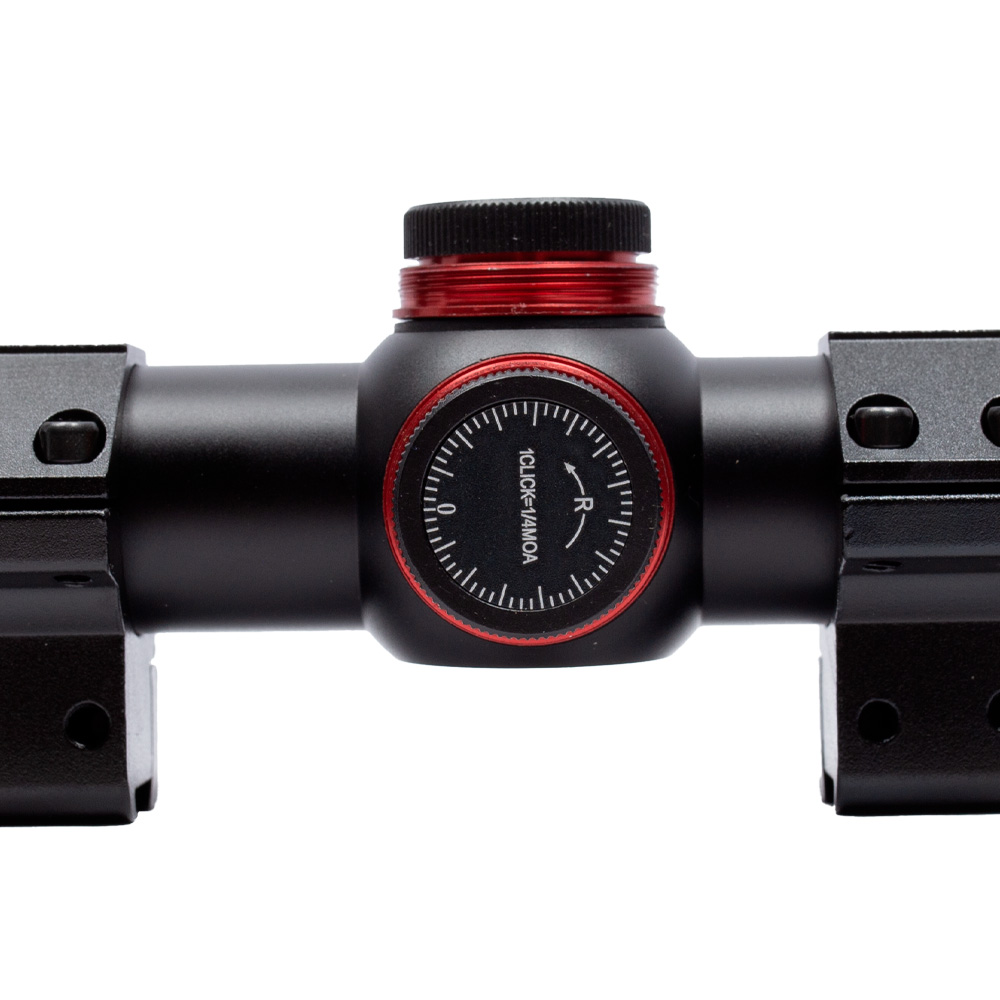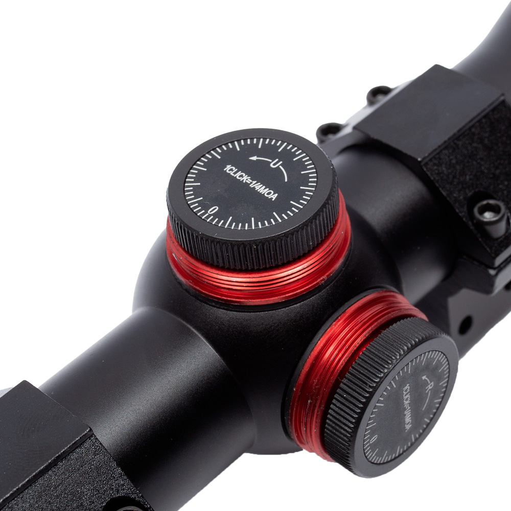 Possui torres de ajuste por click, onde cada click corresponde a 1/4 MOA. A luneta permite ajustes rápidos e extremamente precisos, tanto na elevação, quanto na lateralidade, sem a necessidade de ferramentas.