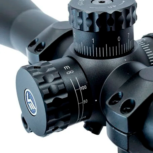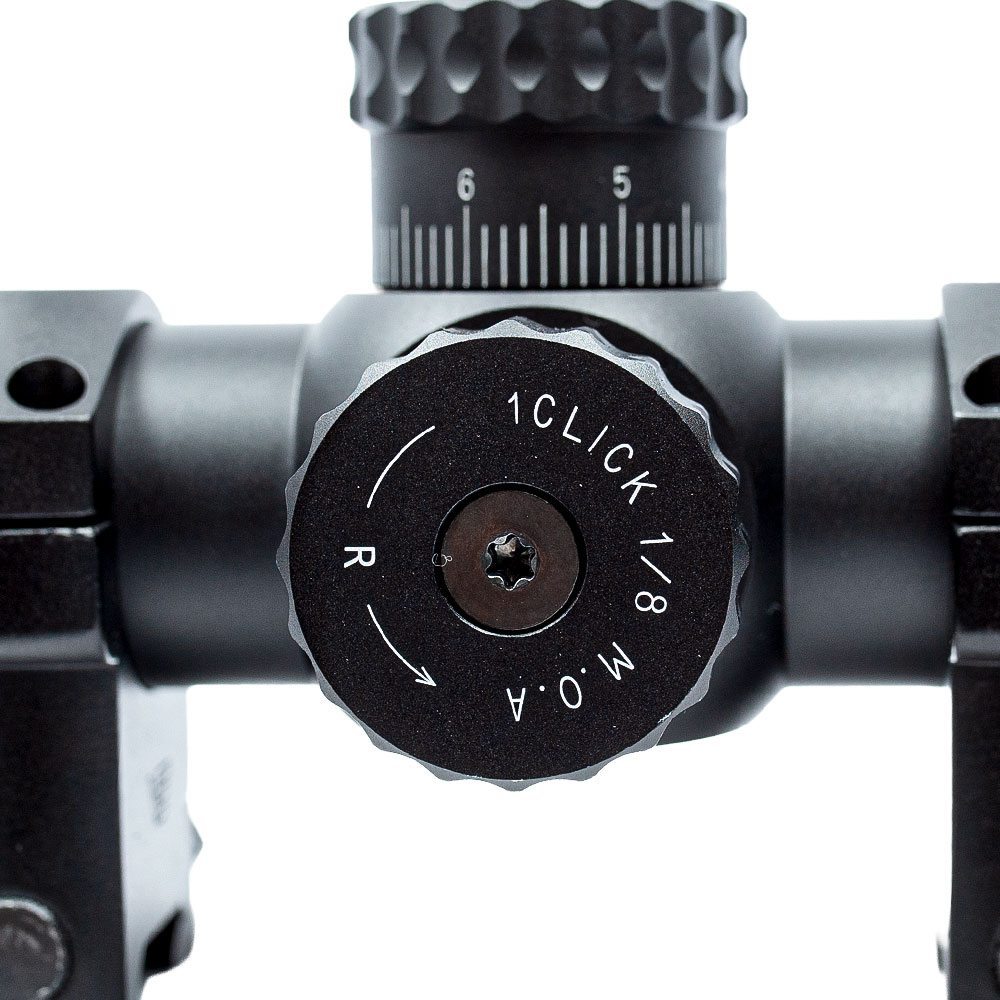 A Vector Optics Sentinel X se destaca pelo sistema de ajuste por click extremamente preciso, onde cada click corresponde a 1/8 MOA (Minute of Angle), o que representa aproximadamente 0.125 polegadas a 100 jardas. Isso permite regulagens finas tanto na elevação quanto na lateralidade, sem a necessidade de ferramentas.