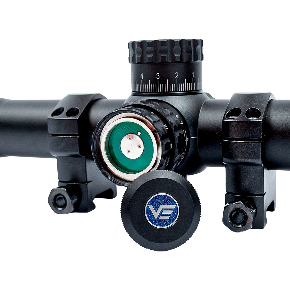 O ajuste de dioptria, varia de -2 a +1.5, proporciona nitidez personalizada do retículo para diferentes perfis de visão, permitindo que o atirador ajuste o foco do retículo para sua visão individual antes de focar no alvo, dispensando o uso de óculos em muitos casos e tornando a experiência de tiro mais confortável e com menos fadiga ocular.