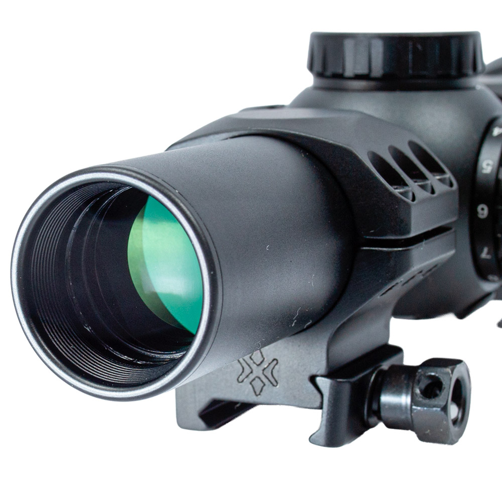 Essa luneta é do tipo LPVO (Low Power Variable Optic), uma categoria muito utilizada em rifles de assalto por permitir transições rápidas entre baixa e média ampliação, ideal tanto para combates próximos quanto para alvos a distâncias maiores.