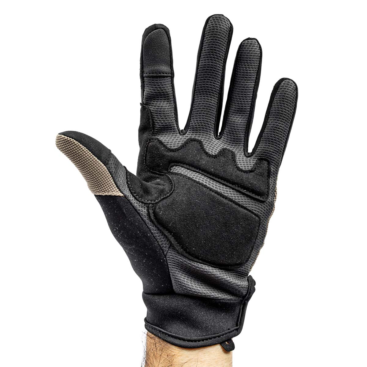 Outro destaque é o suporte elástico que se ajusta perfeitamente às mãos, oferecendo excelente mobilidade e destreza. Isso permite manipular carregadores, equipamentos e acessórios com facilidade e precisão, sem comprometer a sensibilidade dos movimentos.