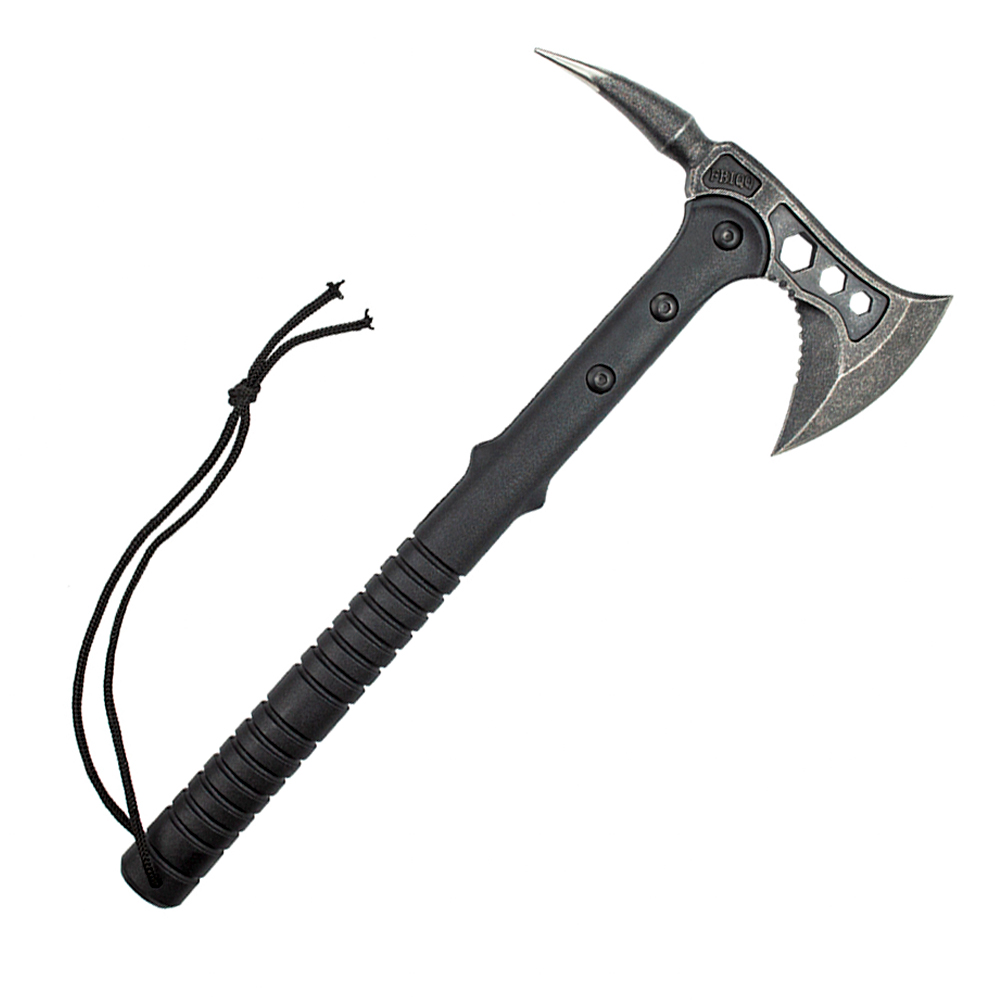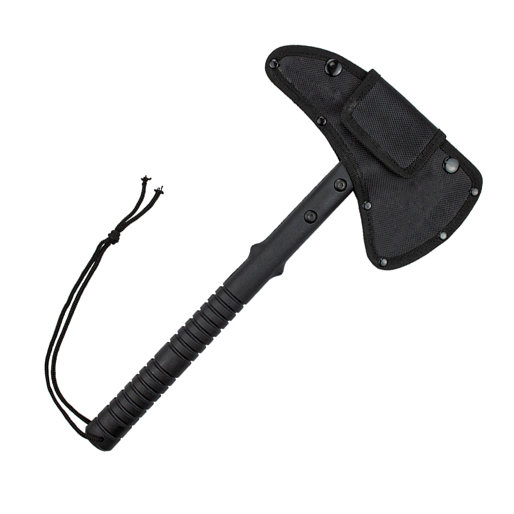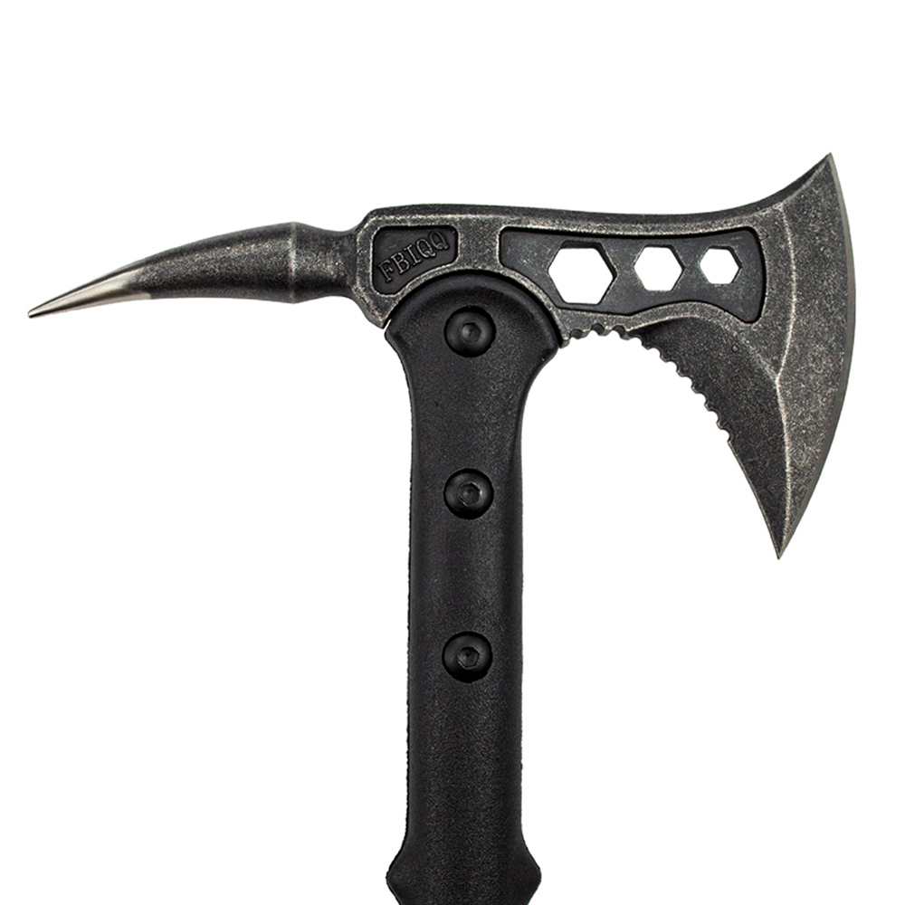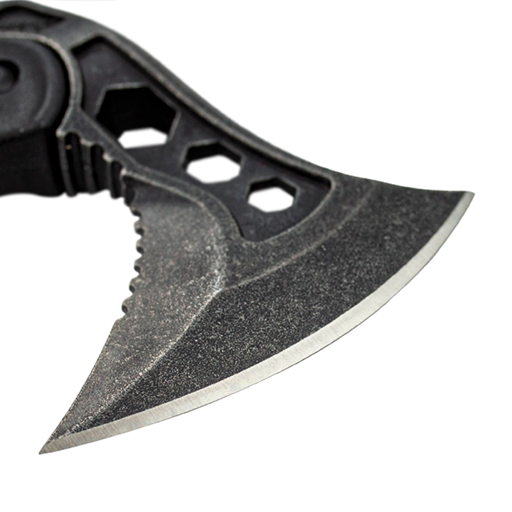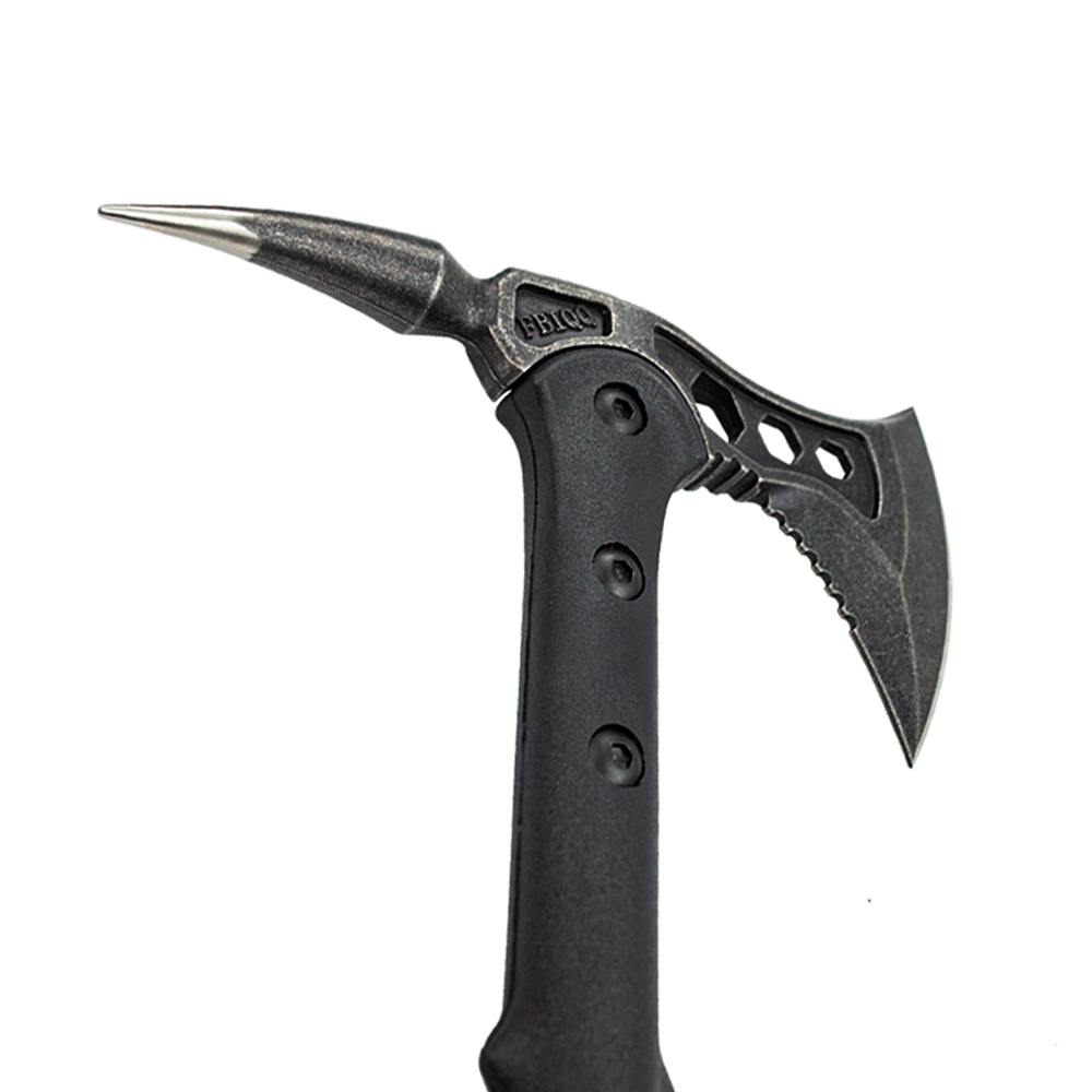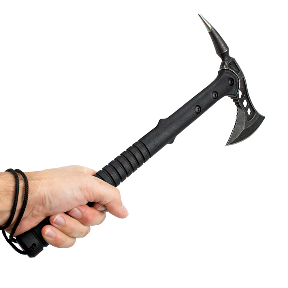 Machadinha Tática Duplo Bit com picareta, possui cabeça em metal de 9,5 cm de comprimento.