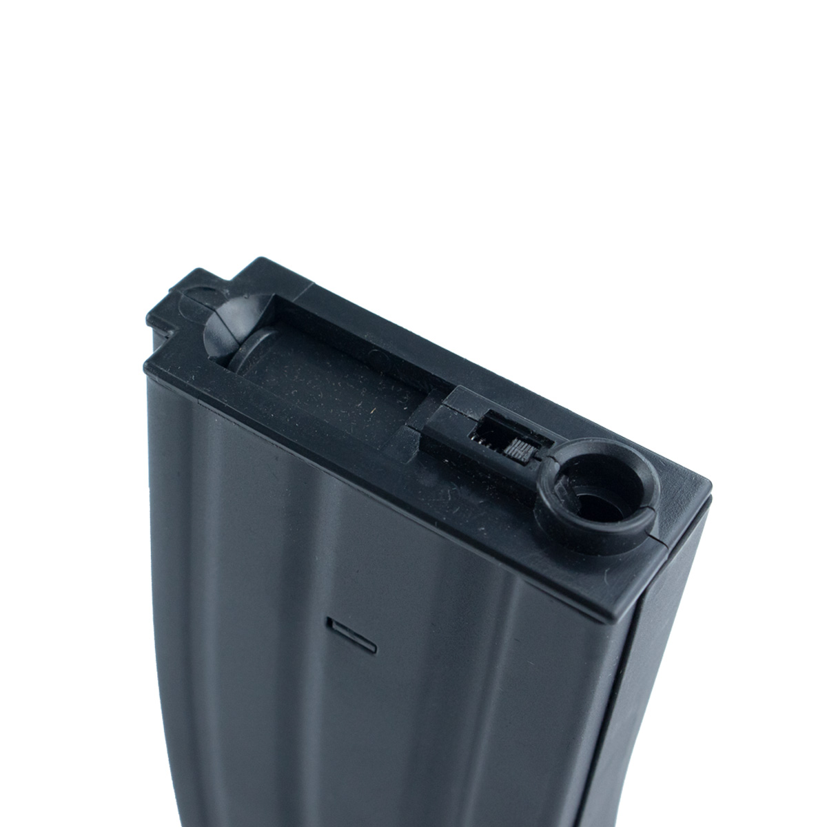 Magazine Airsoft Hi-Cap com catraca para M4 e M16, possui capacidade para até 300bbs.