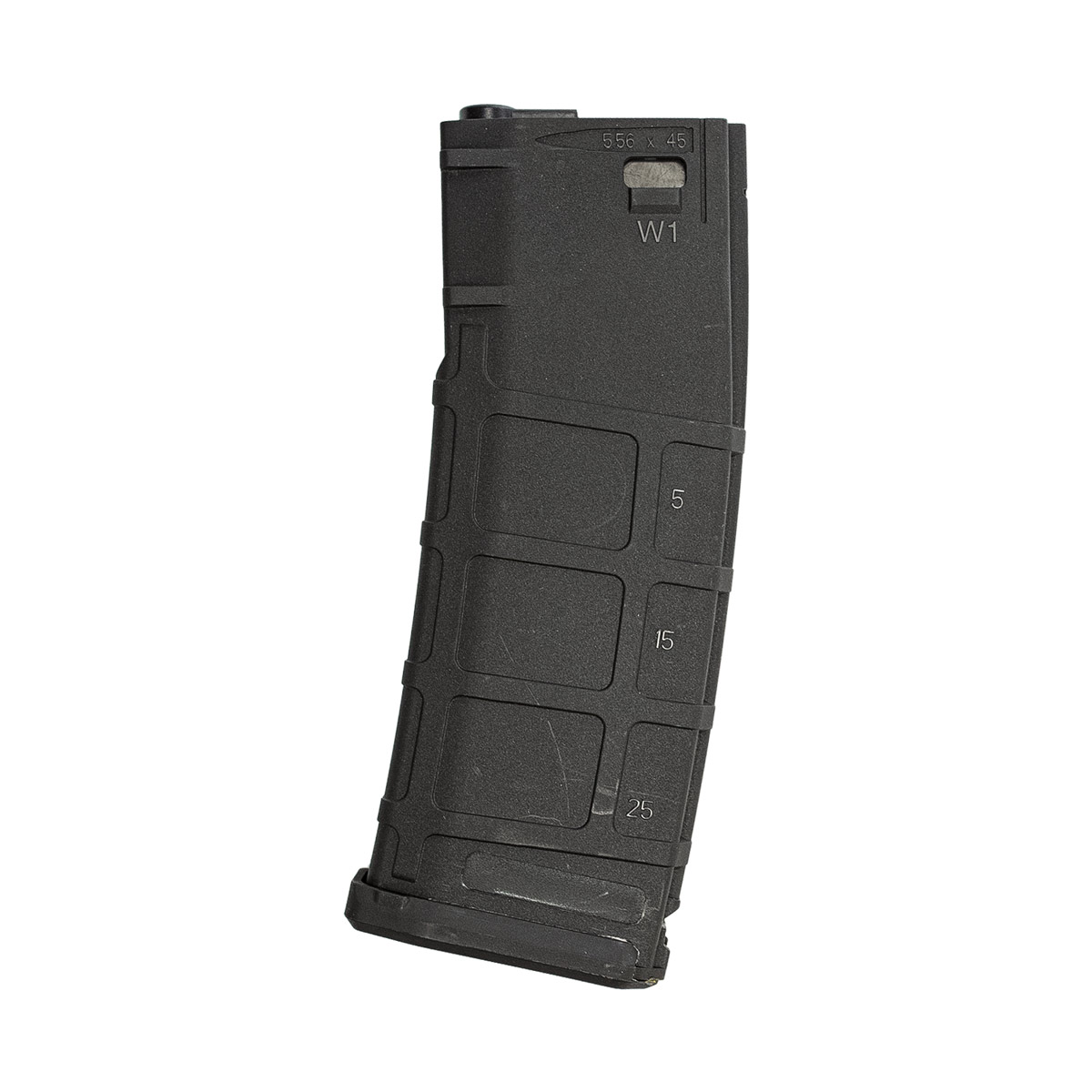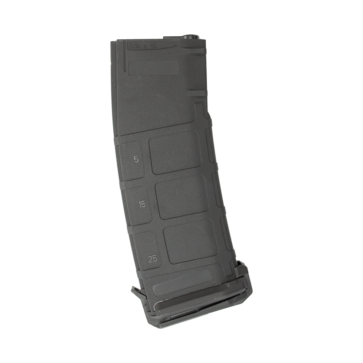 Esse magazine é de média capacidade (mid cap) que é o estilo de magazine que deixa a experiência de jogo mais realista do que os magazines de alta capacidade (Hi-Cap). Além disso, tem como vantagem