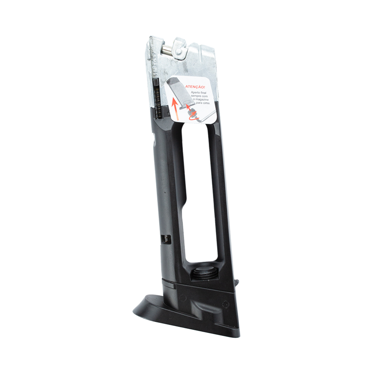 Esse carregador para Pistola co2 W129 tem capacidade para 18 esferas de aço 4.5mm.