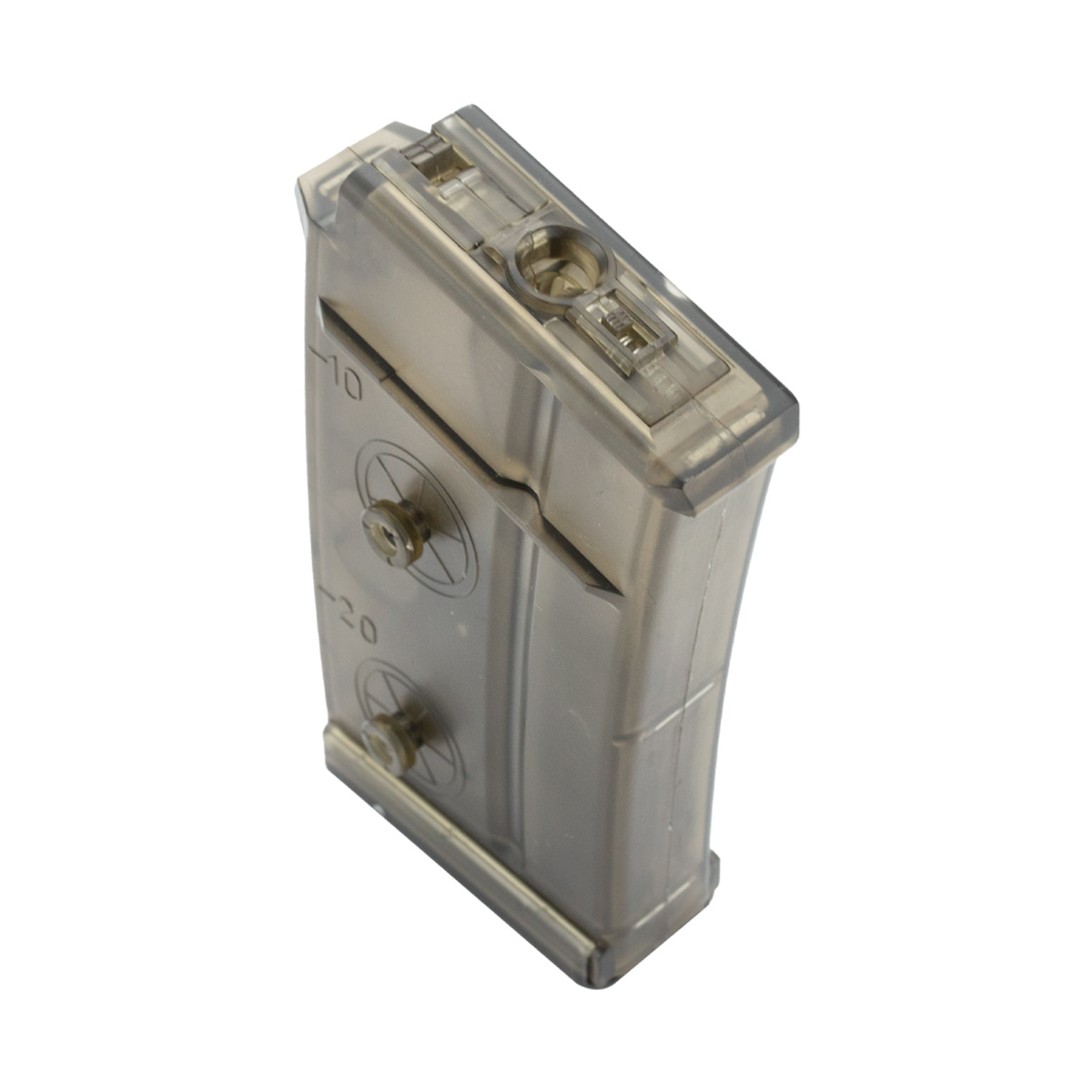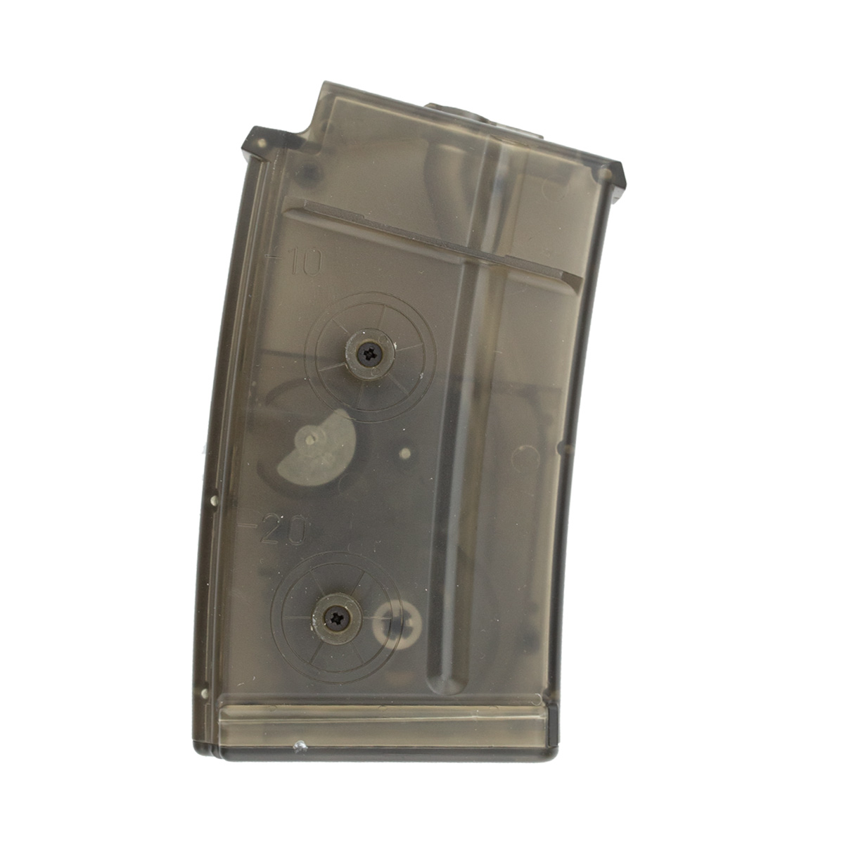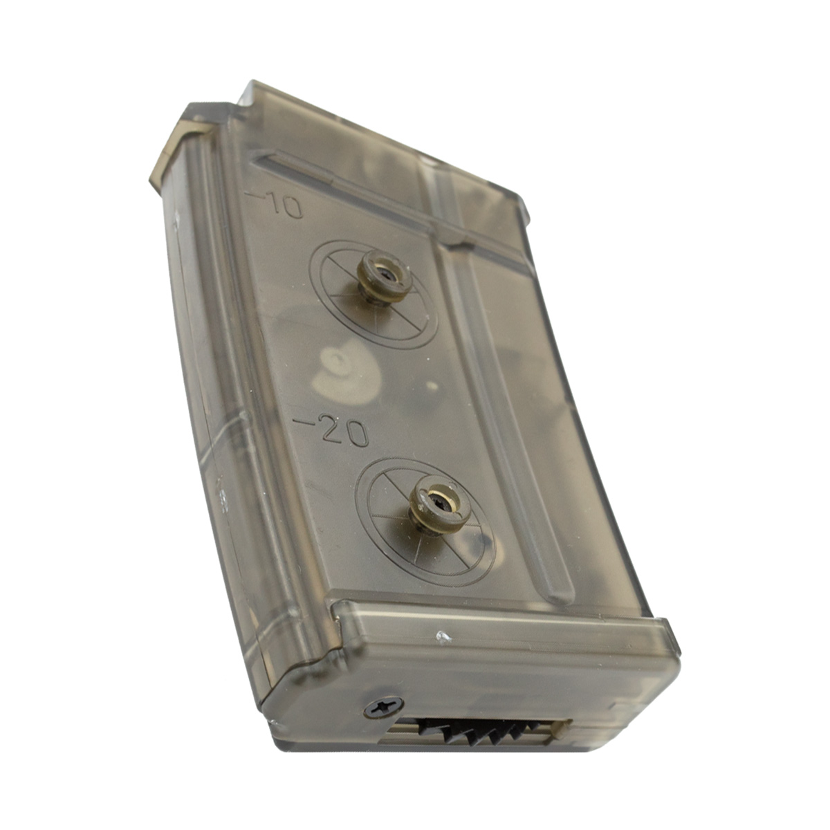 Cor translucida e com capacidade para até 220 bbs para Airsoft. É recomendado o uso de 200 bbs.