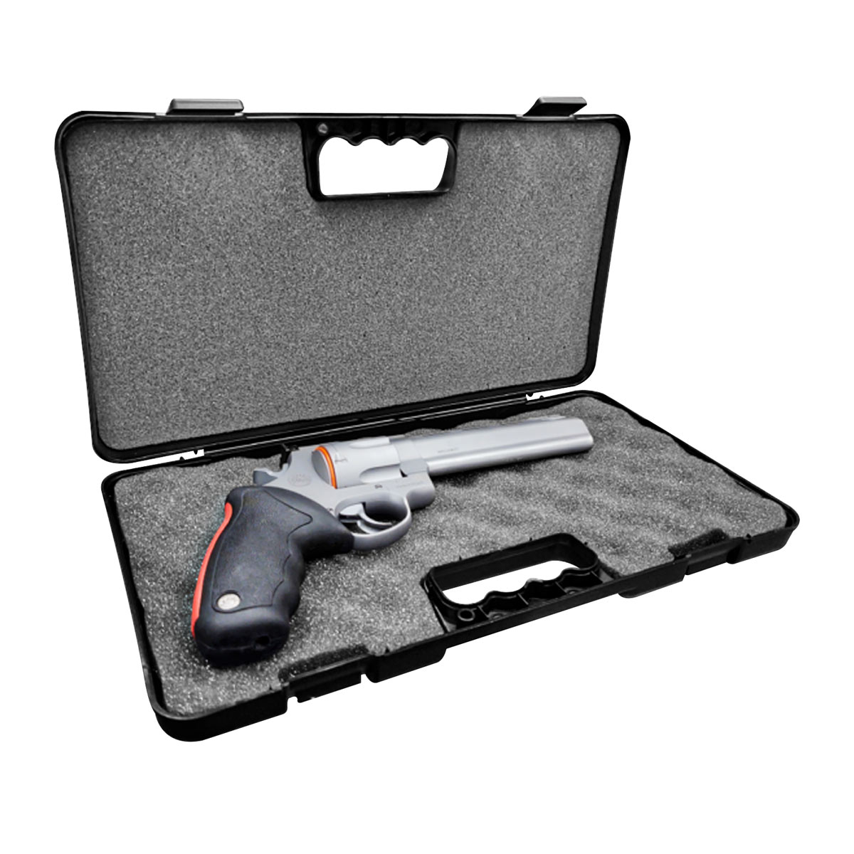 Seu espaço interno de 38cm permite uso tanto para guardar pistolas como revólveres de forma prática e segura! A segurança é aumentada graças ao passa cadeado localizado no pega-mão da maleta.