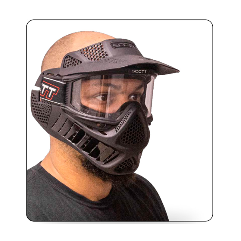 Máscara para Paintball e Airsoft com design full face que vai garantir a proteção de todo o seu rosto durante os jogos.