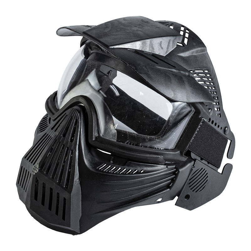 Uma máscara de proteção full face, indicada para uso em jogos de Airsoft e paintball.